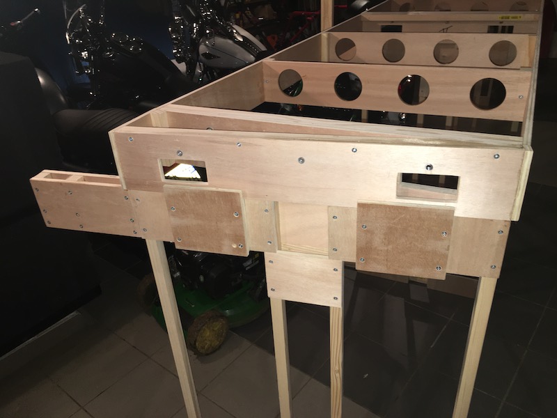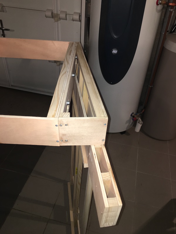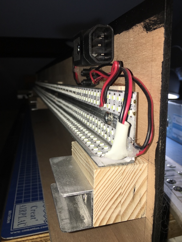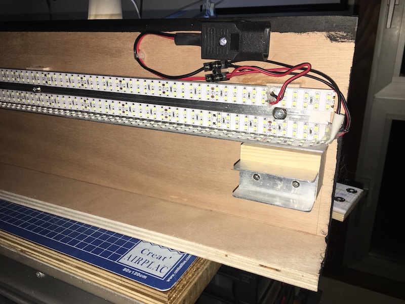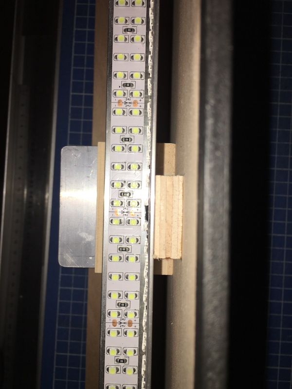 Une petite pièce de bois assure un écartement entre la face avant du bandeau et la rampe lumineuse pour éviter tout échauffement.