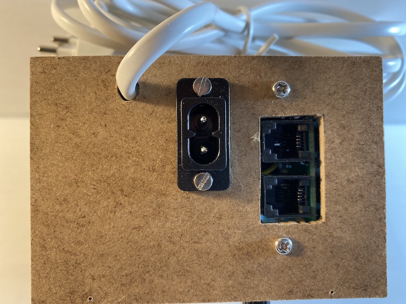 avec le branchement électrique, la prise de liaison électrique à la voie, et deux prises RJ 45 de liaison aux capteurs Ultrasons