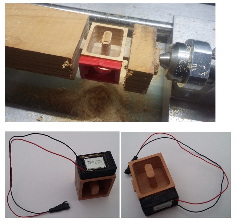 Il s’est avéré que le son était plus aigu et plus « criard » que sur la forme en bois ayant servi aux essais. La solution trouvée est la boite à œufs. (Pensez à demander à Madame avant d’aller vous servir). Le tapissage intérieur sur toutes les faces a permis de retrouver un son plus grave de bonne qualité.