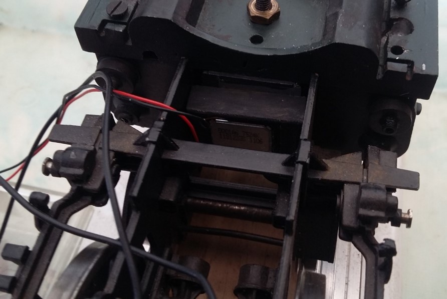 Le lest prenant un volume très important dans la chaudière, il ne reste pas beaucoup de place pour le décodeur ESU L envisagé avec son réservoir d’énergie séparé. La machine doit pouvoir « tirer » une rame sans problèmes.
