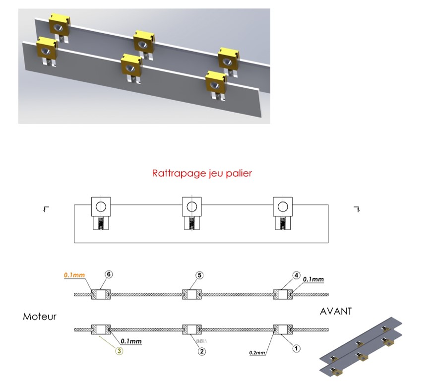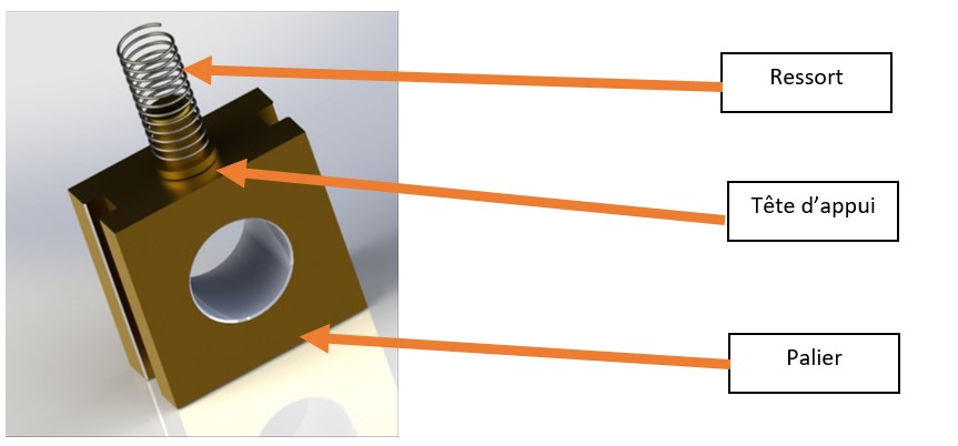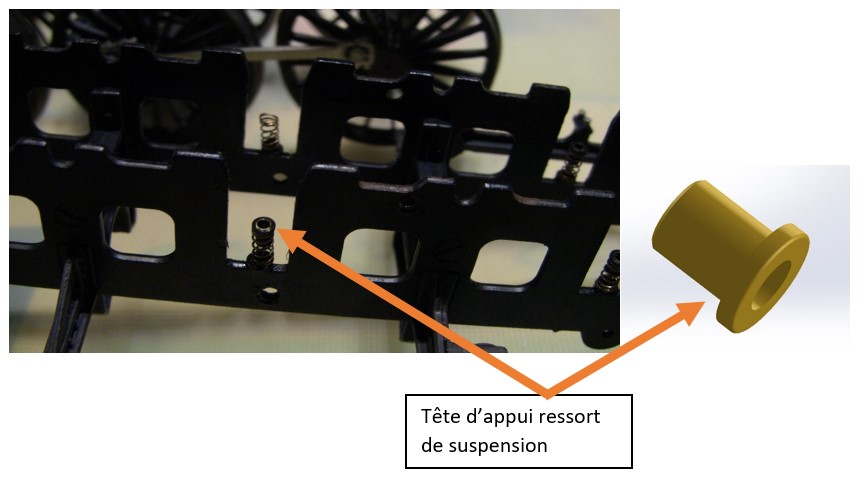 Ne voulant pas démonter les bielles. J’ai trouvé une solution, quoiqu’imparfaite, qui fonctionne et qui me semble durable : Un ressort d’horloger de largeur < 1.5mm et d’épaisseur 0.1mm.