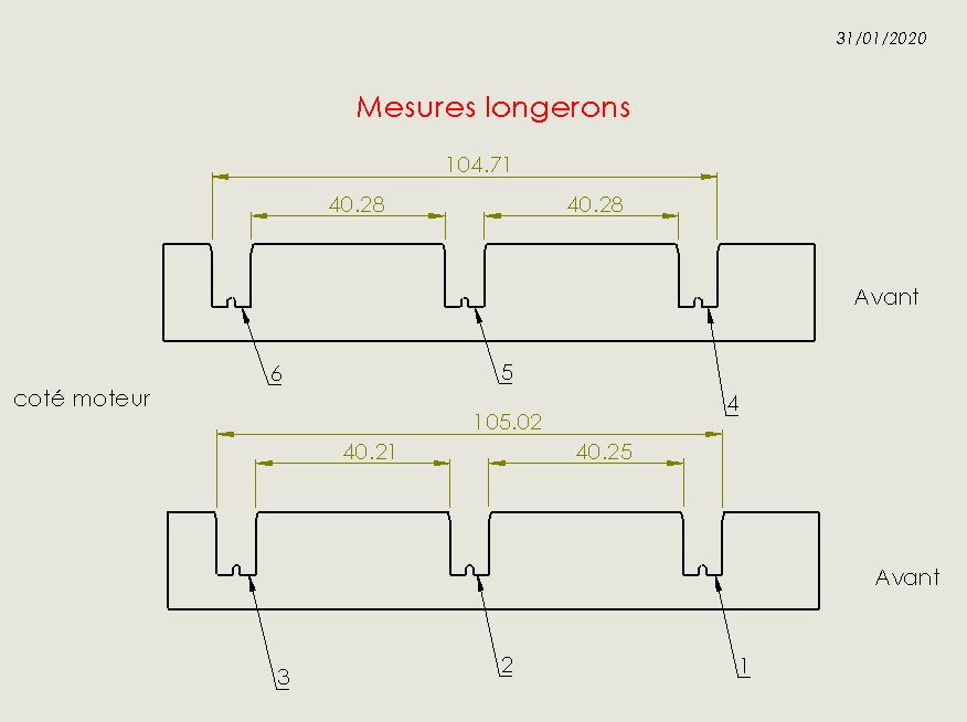 Résultat des mesures : J’ai aussi procédé à un contrôle des longerons: Ce qui m’a permis de quantifier que le jeu était important sur 1 palier, et moyen sur 3 autres.