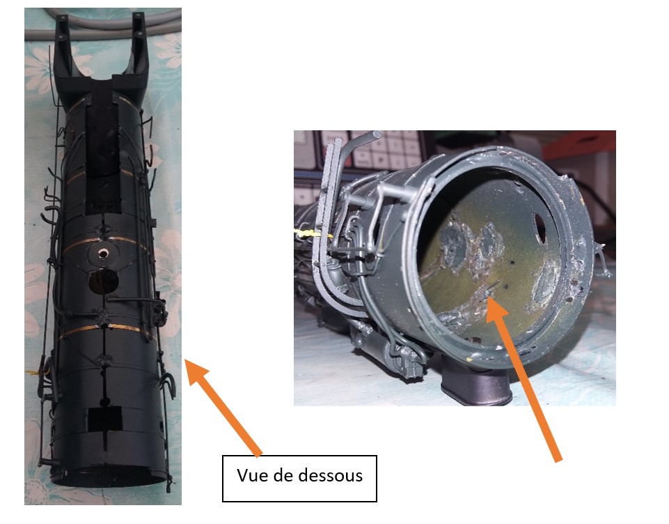 Le châssis de cette locomotive étant à une polarité. Il faudra veiller à une bonne isolation de l’électronique afin d’éviter un court-circuit et de « cramer » le décodeur. a. Le lest