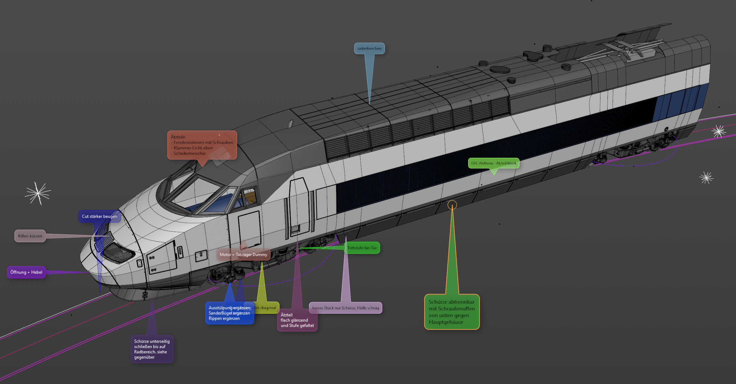 À la recherche de plus de photos je suis tombé sur des clichés de motrices déraillées et ayant subi des impacts. Cela a révélé pas mal de détails utiles de tout ce qui touche aux parties orientées vers le bas ou en toiture... et pas mal de corréctions nécessaires