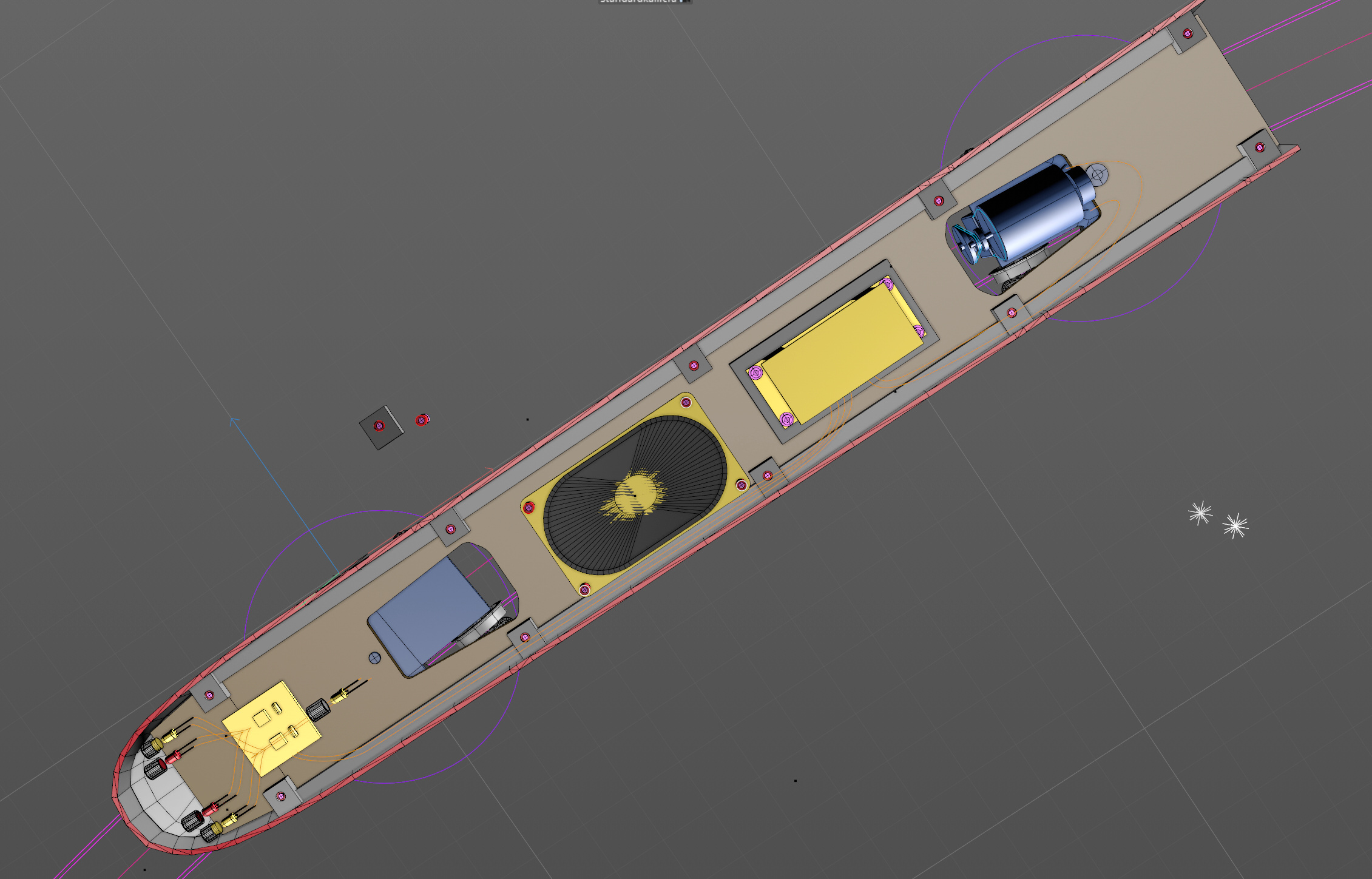En même temps je commence à penser à l'assemblage. Je pense créer une partie centrale imprimée en 4 ou 5 pièces distinctes (le test étant une de ces pièces), collées, que j'attacherai au cadre en laiton ou à une plaque découpée au laser, qui elle réunira en plus les parties éléctriques plus le cablage, les points d'attache des bogies, etc. .