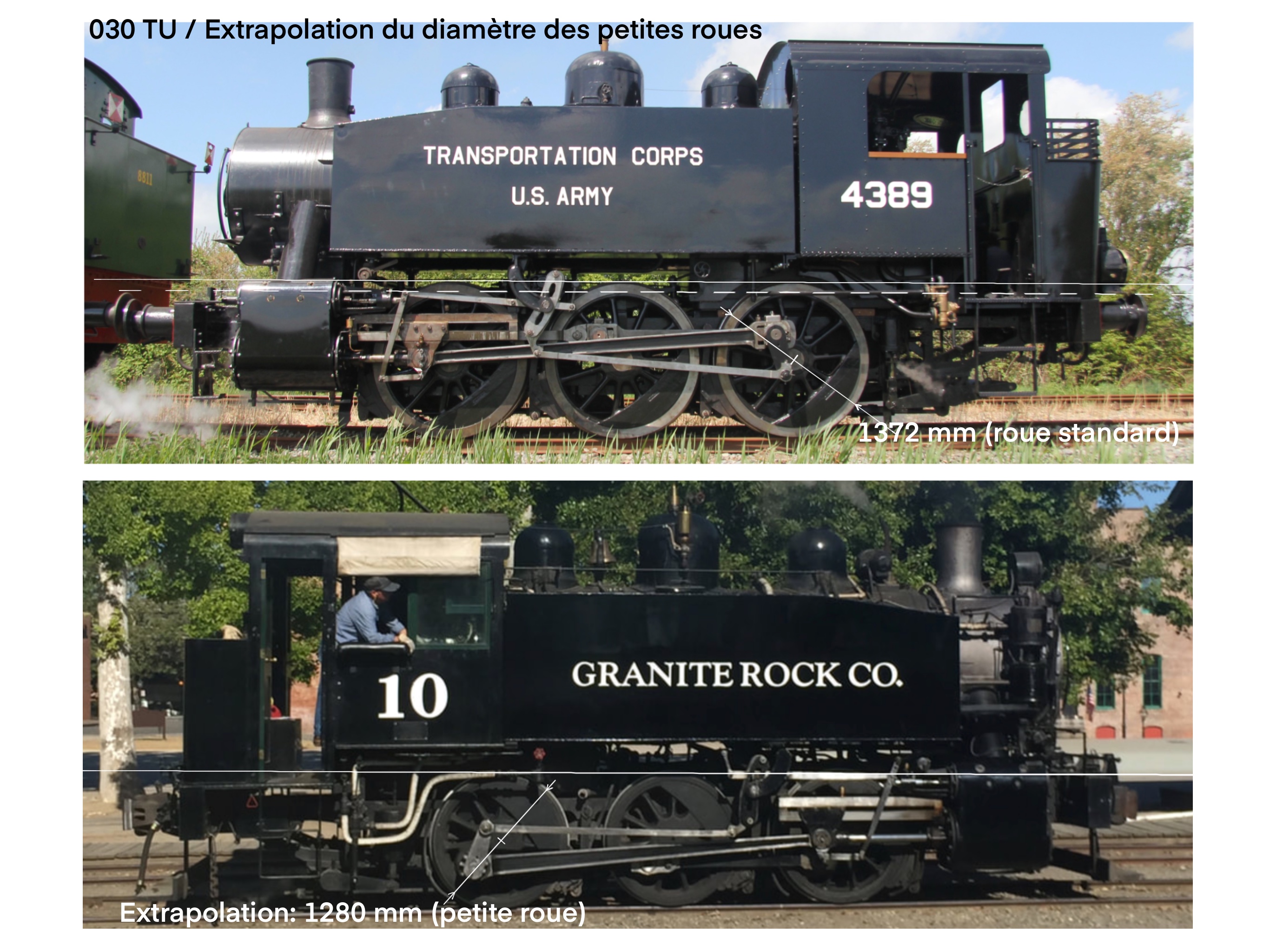 Concernant le diamètre des petites roues, faute d’information dans la documentation en ligne y compris anglo-saxonne, il ne reste qu’à extrapoler en confrontant des vues latérales bien définies des deux versions, comme ici: