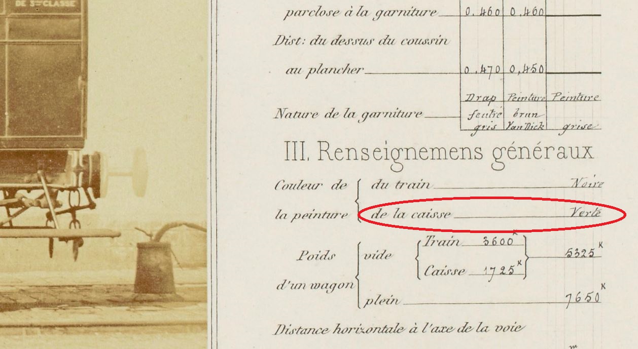 Je n'ai aucune certitude pour la couleur, peut être était-ce le vert Nord ancien ou le vert Nord clair mais d'après l'album Geoffroy elles devaient être verte uni-colore ???
