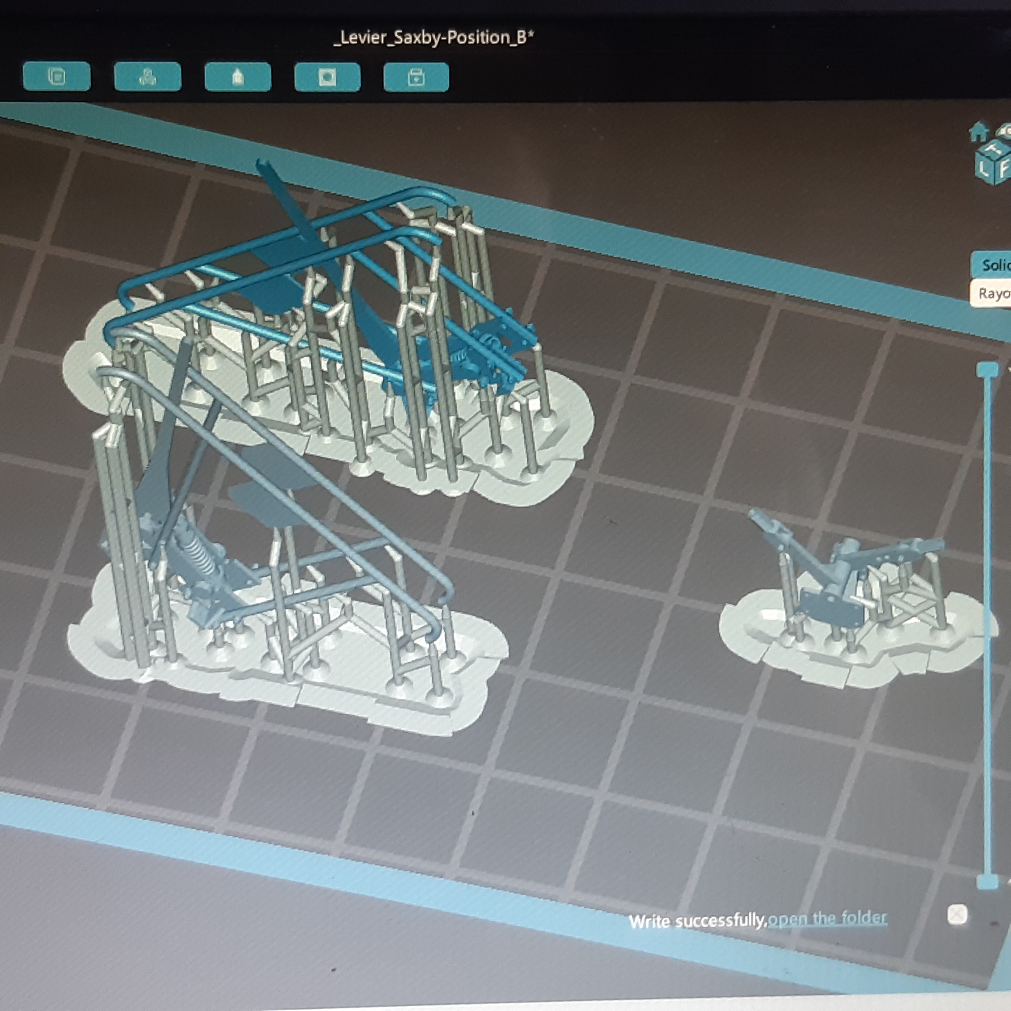 Je confirme, tes pieces en grappe pour l'impression ce n'est pas le top vu les inclinaisons que je suis obligé de faire. Je suis sur tes autres pieces que tu as faites. Les renvois d'angle et les deux leviers. Je ferai des photos avec les supports pour que tu comprennes.