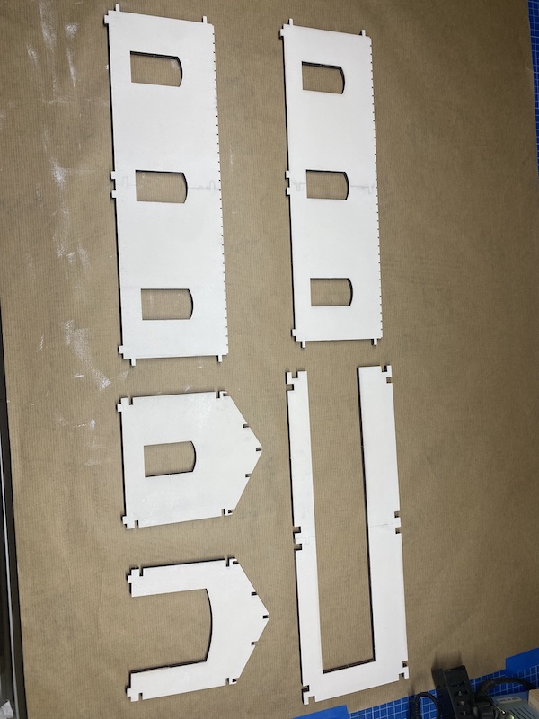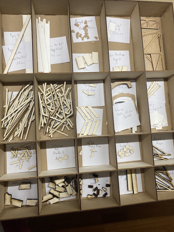 Et, après quelques temps de découpe, on obtient les différentes pièces qu’il va maintenant falloir assembler.