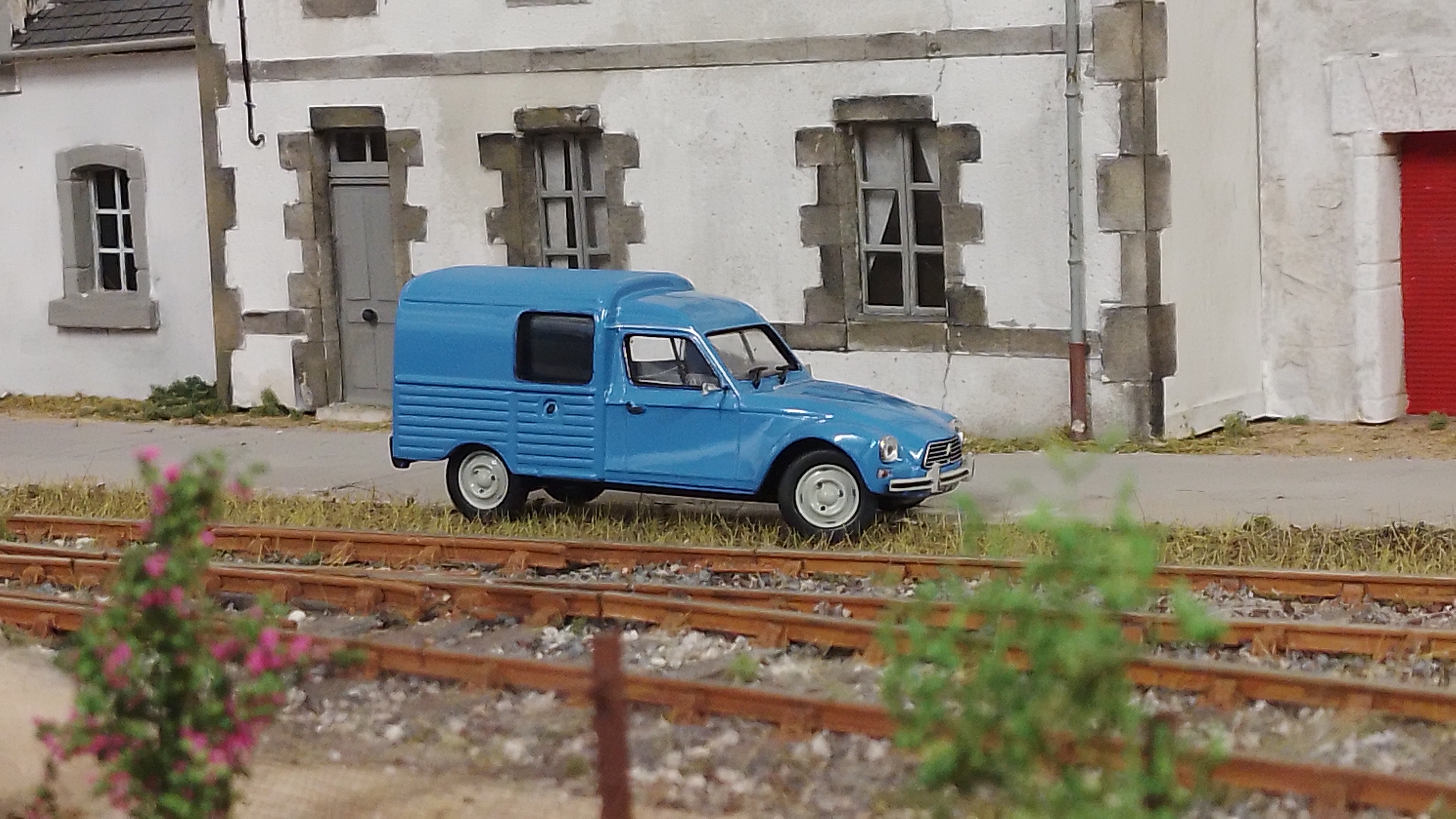 Quelques modifs' sur une voiture (qui me plairait bien en réalité... :Coeur1 ), une Citroën Acadiane (marque Solido au 1/43). Je l'ai démonté pour tourner et coller les roues, ajouter les joints noirs aux fenêtres, reprise de quelques détails en noir également, un peu de peinture orange sur les clignotants avant, un peu de chrome sur les gouttières, confection et pose de rétroviseurs, car ils avaient été arrachés... Et voilà un petite camionnette typique des années 70/80'.