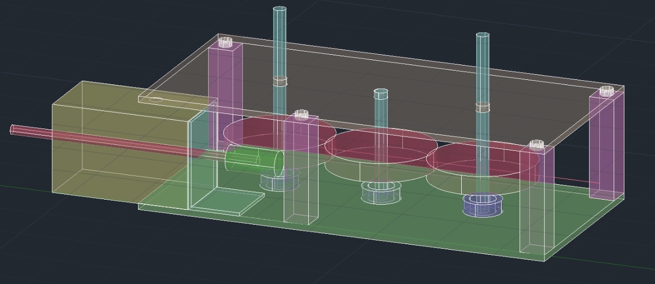 Les pales sont fixées à la pièce servant de plafond à la cabine avec des boulons/écrous de 2 mm de diamètre. Elles peuvent être rendues mobiles et, pourquoi pas, être motorisées.