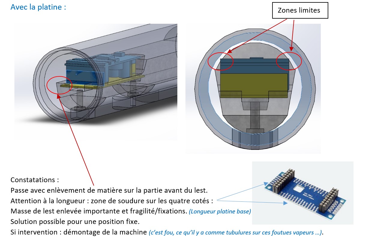 Remarque : A ce stade, je n’ai pas encore résolu le passage des câbles (supports individuels, barrette coudée, soudure directe,…). voir vidéo assemblage sur le fil précédent