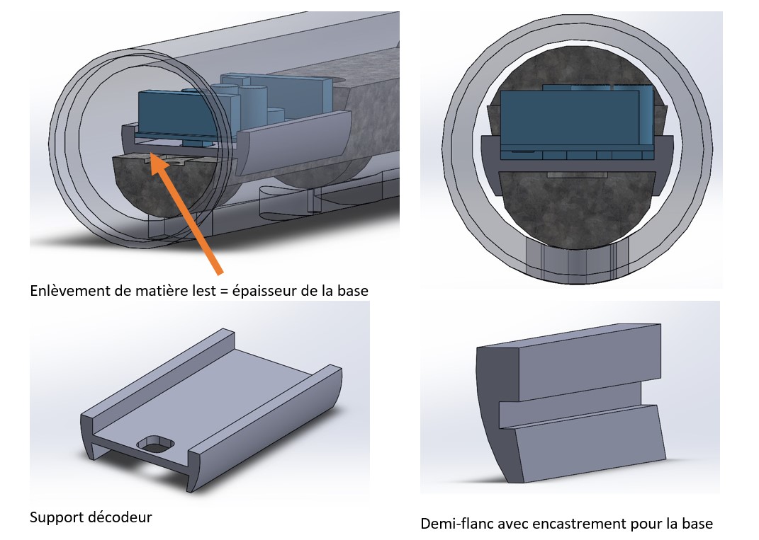 Ce support de décodeur est ensuite décomposé en trois parties afin de faciliter son usinage : 2 flancs et une base rectangulaire évidée pour gagner de la place en hauteur. (Composant sur le décodeur).