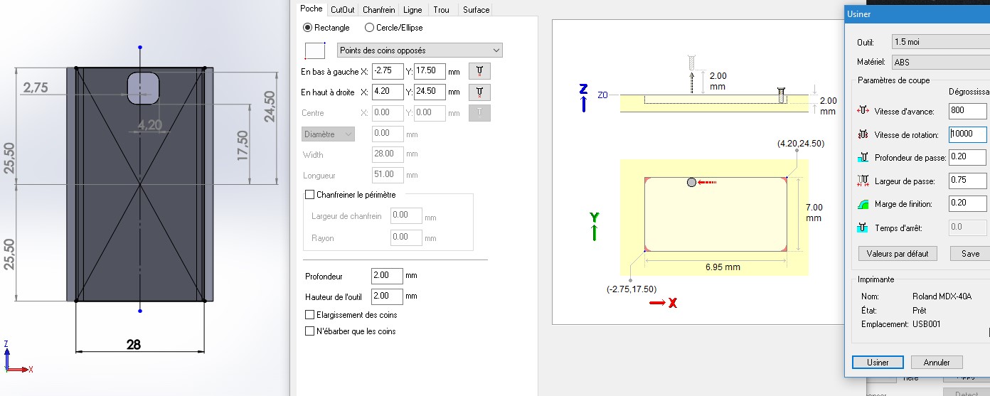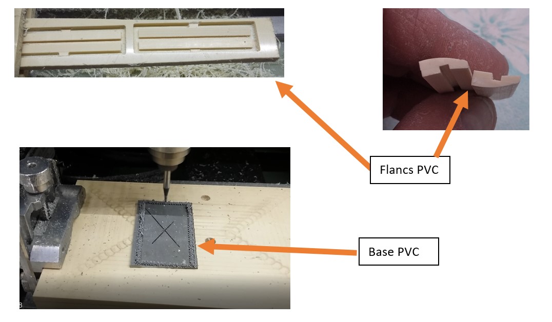 Usinage du prototype sur une plaque de PVC de 5mm d’épaisseur avec une fraise de diamètre 1.5mm: Vidéo usinage :