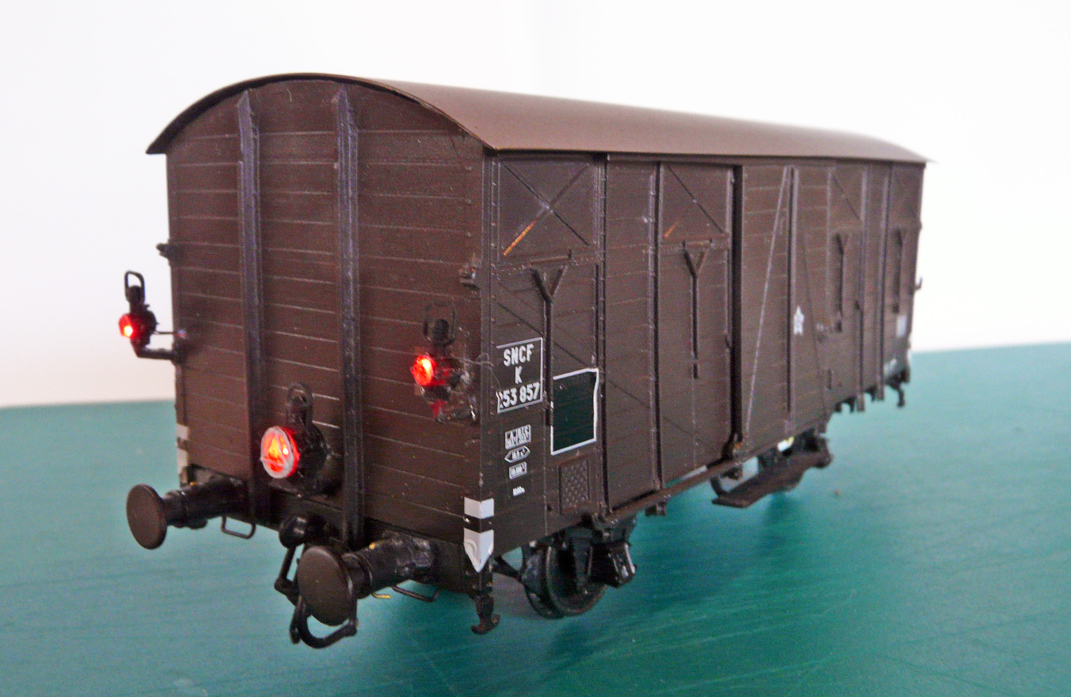 Quelques précisions, l'éclairage est fait par leds et piles, actionné par un interrupteur sous le châssis. Les fils sont en vrac (je sais) mais comme personne ne monte dans le wagon....