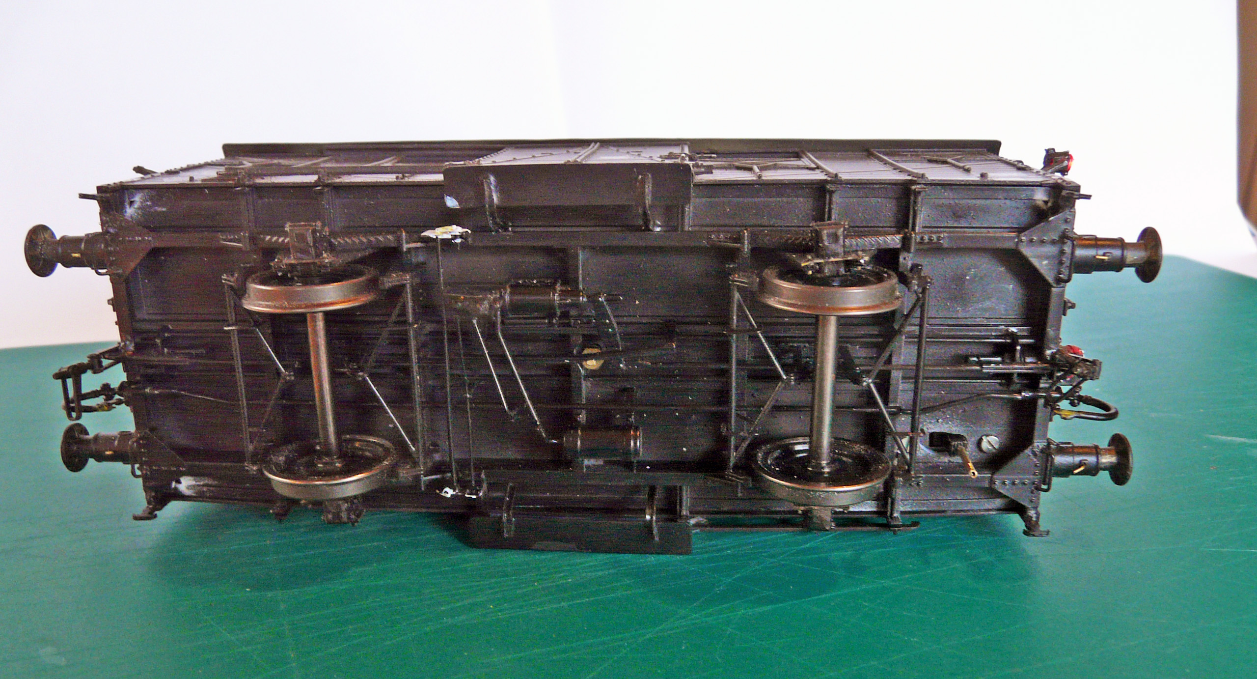 Il se compose de deux pièces en impression 3D, la caisse et le châssis complet. J'ai refait le toit en laiton et installé des pièces du Cercle, telles que les tampons, boîtes d'essieux, roues, etc. Les lanternes sont des pièces Haxo.