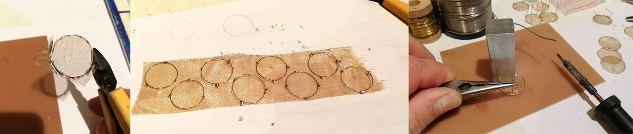 Découper les cercles à la pince coupante, au raz du fil laiton. Passer un coup de lime autour du cercle.