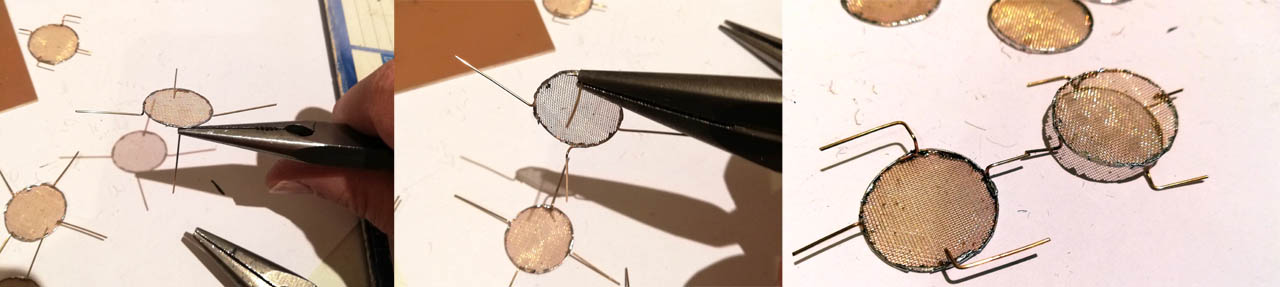 Les photos présentent mes premiers essais, sans avoir bien défini leurs diamètres et remis en forme les grilles. J'en ai fait d'avance et installerai les plus réussies.