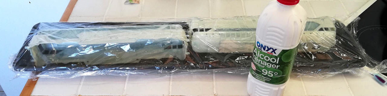 Pour enlever les peintures blanches résistantes, j'ai acheté un dessous de jardinière pour y tremper les locos Lima.