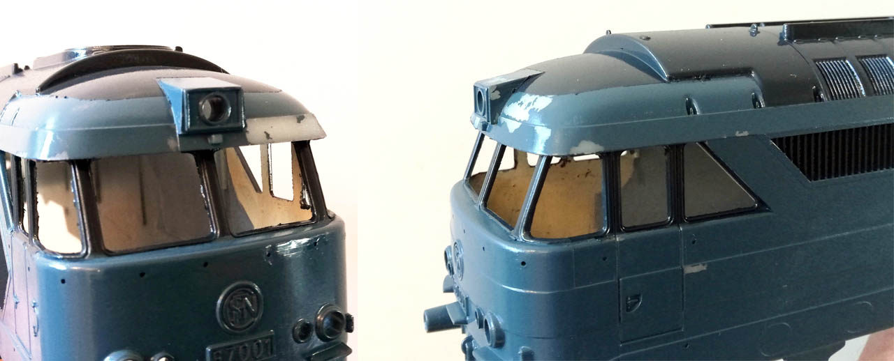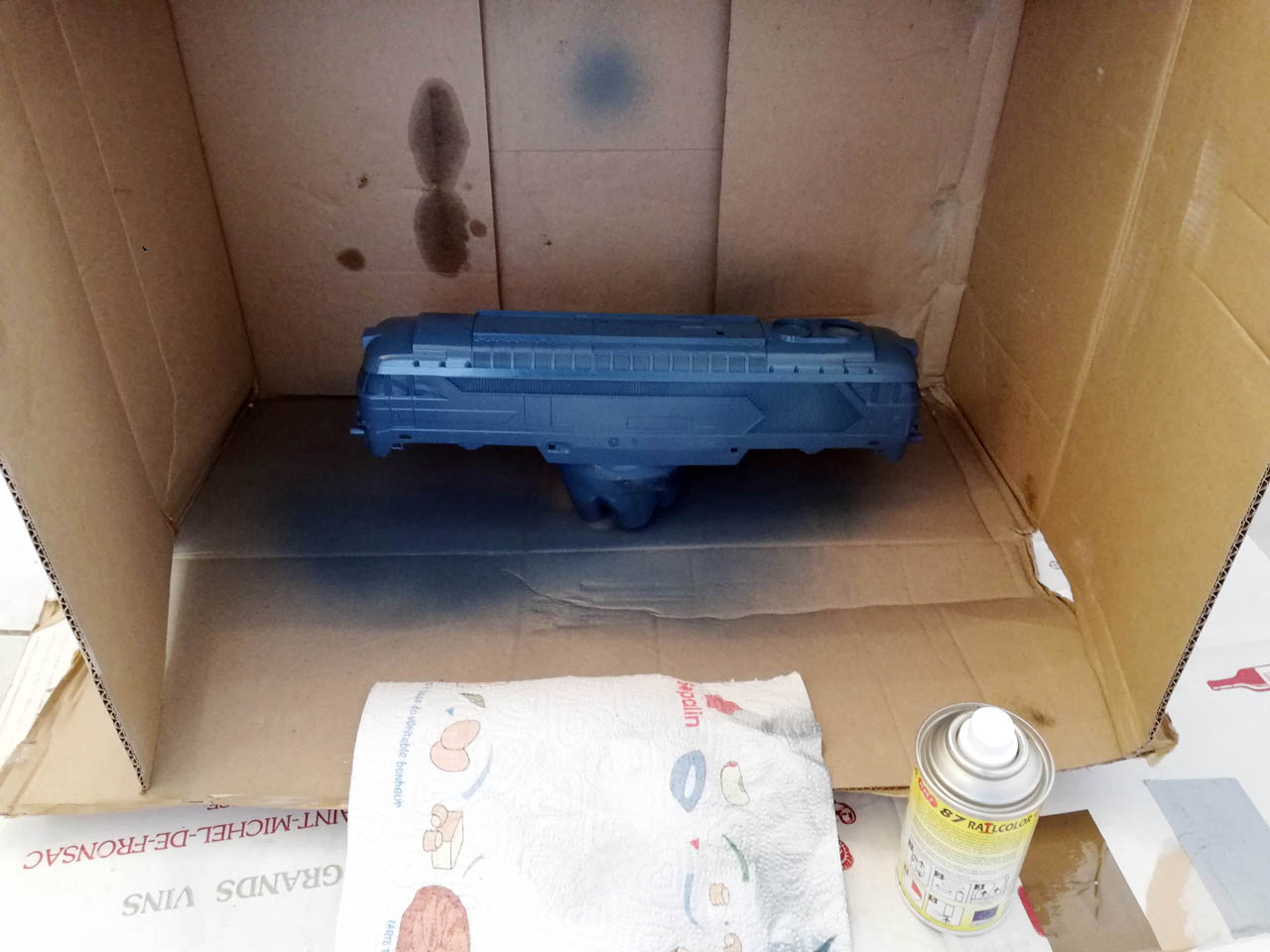 Avec vos conseils, pour peindre les locomotives suivantes, je n'ai pas mis d'apprêt, mais j'ai légèrement poncé l'ensemble de la caisse avec un abrasif très fin.