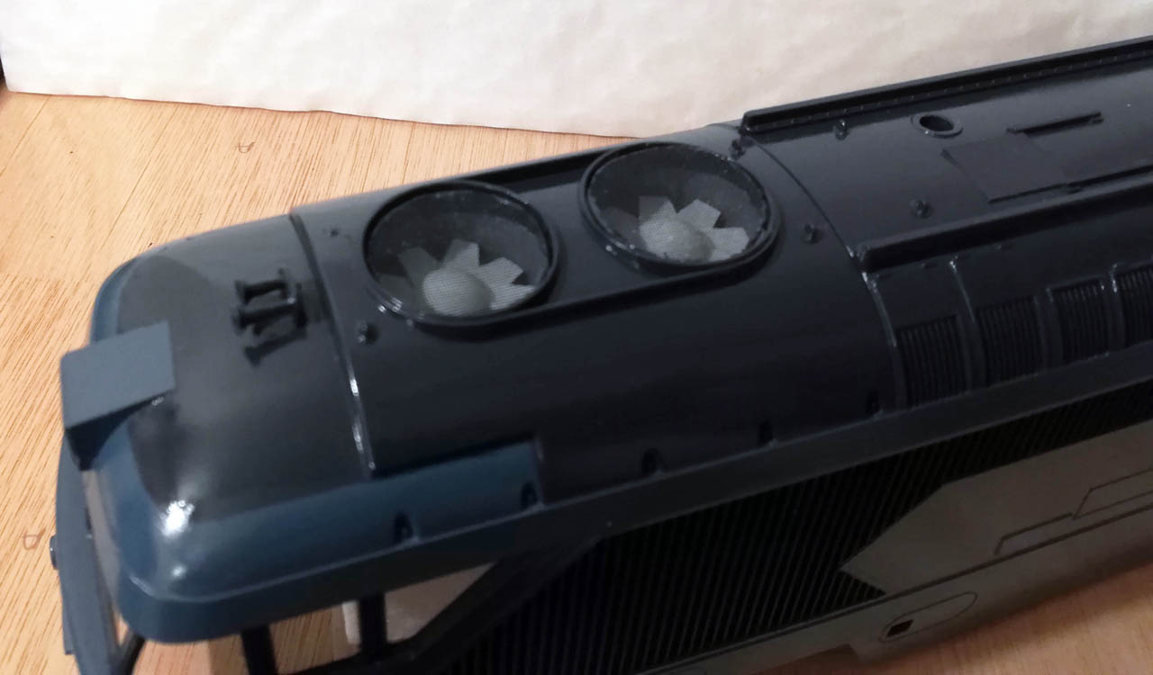 Je vais peut être rapprocher les ventilateurs des grilles pour qu'ils soient plus visibles et mettre une baguette en haut des cheminées, pour cacher la soudure circulaire.