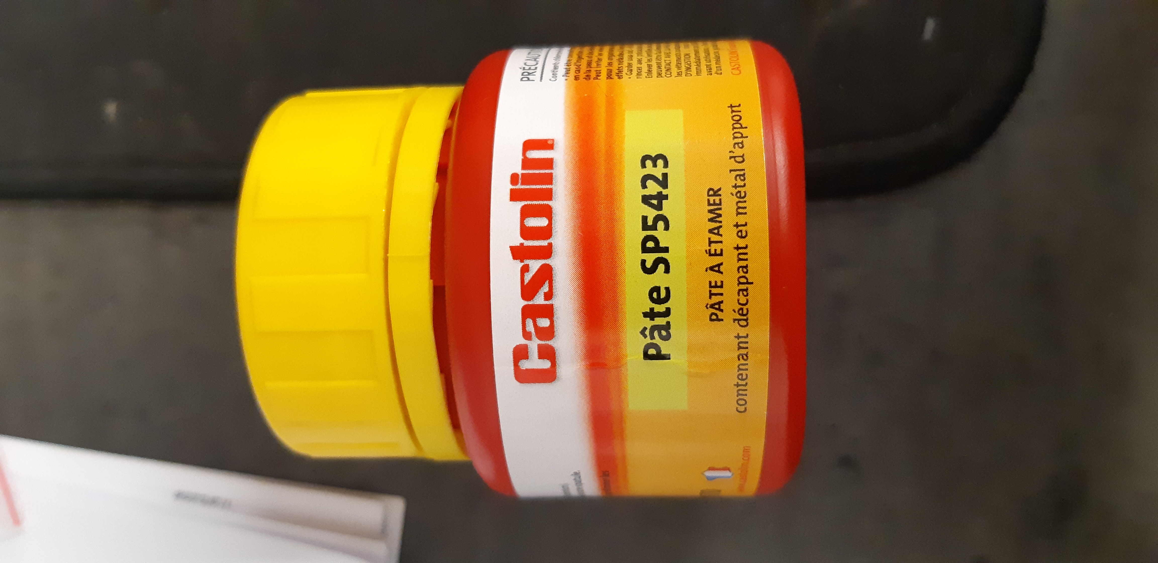 Oui effectivement le Castolin SP 5423 est la pâte à souder à l'étain qui a remplacée l'ancienne composition contenant du plomb qui est interdit depuis.