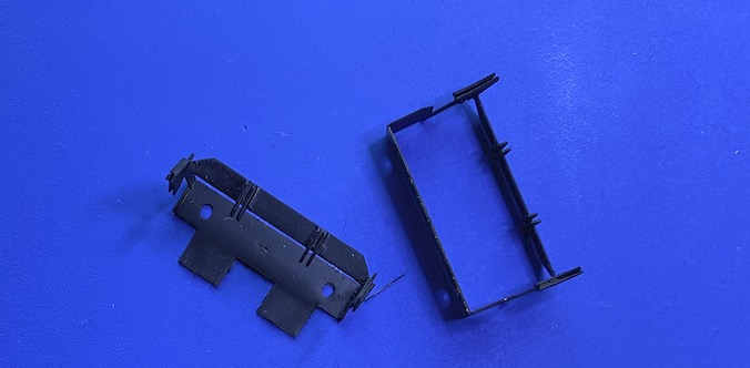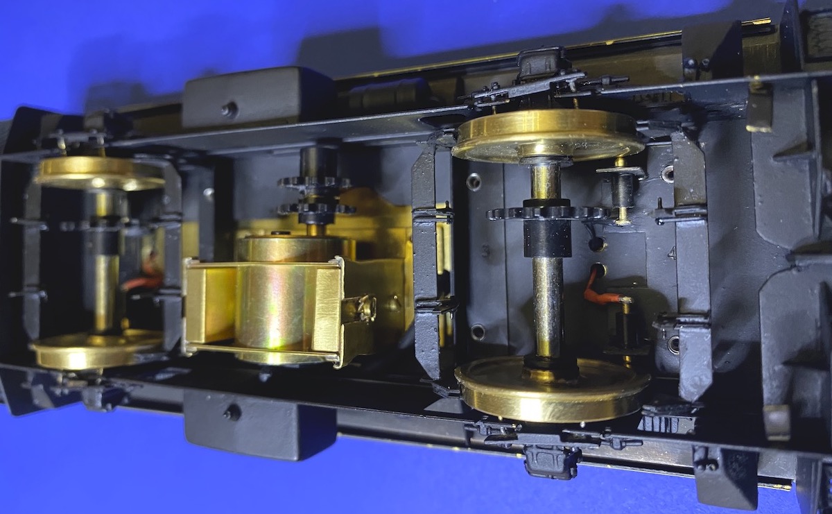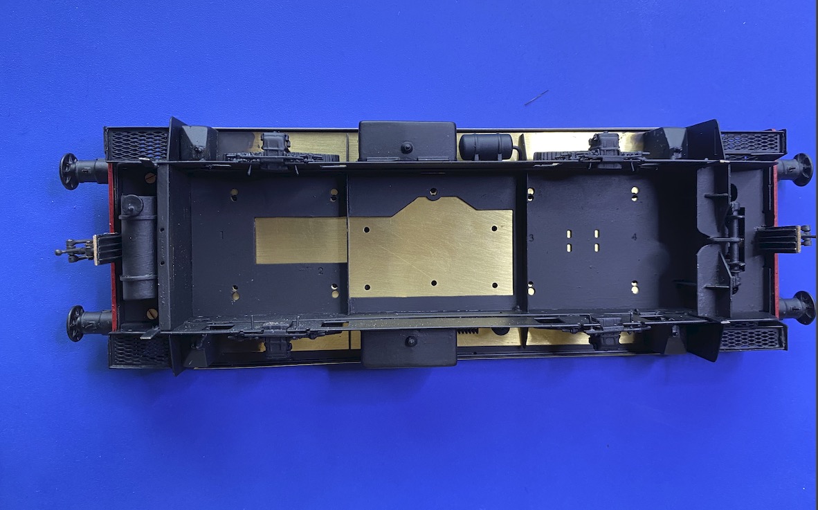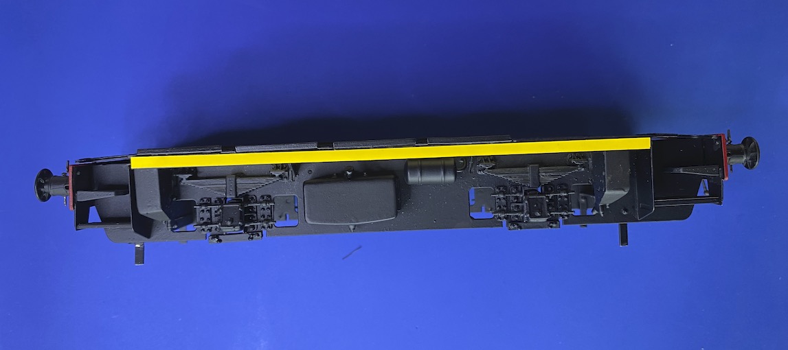 Aujourd'hui, préparation des supports de palpeurs et sabots de frein, et peinture du châssis et des travées AV et AR, en cours de séchage.