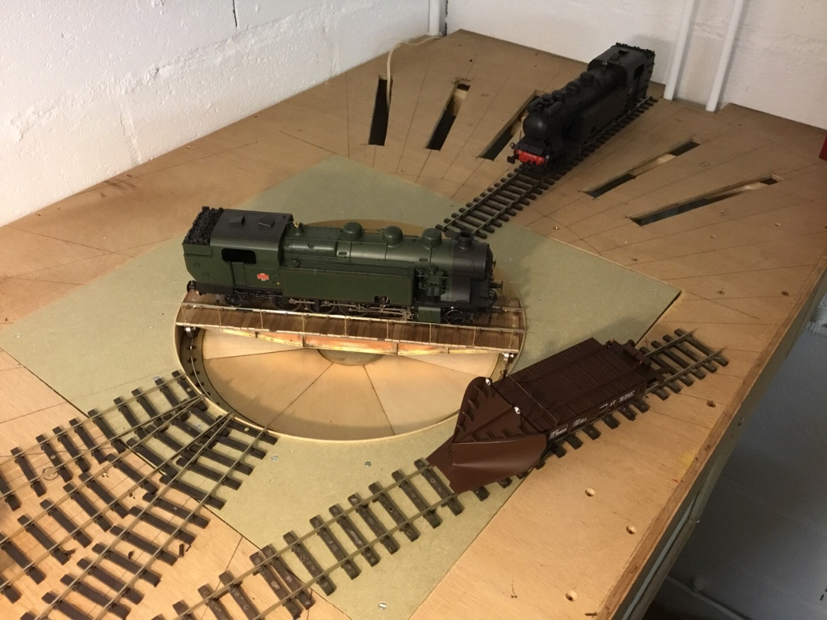 Si je peux me permettre, que pense que ta rotonde est trop petite, trop étriquée autour des voies. Il faut pouvoir se déplacer autour des machines sans rencontrer un mur !