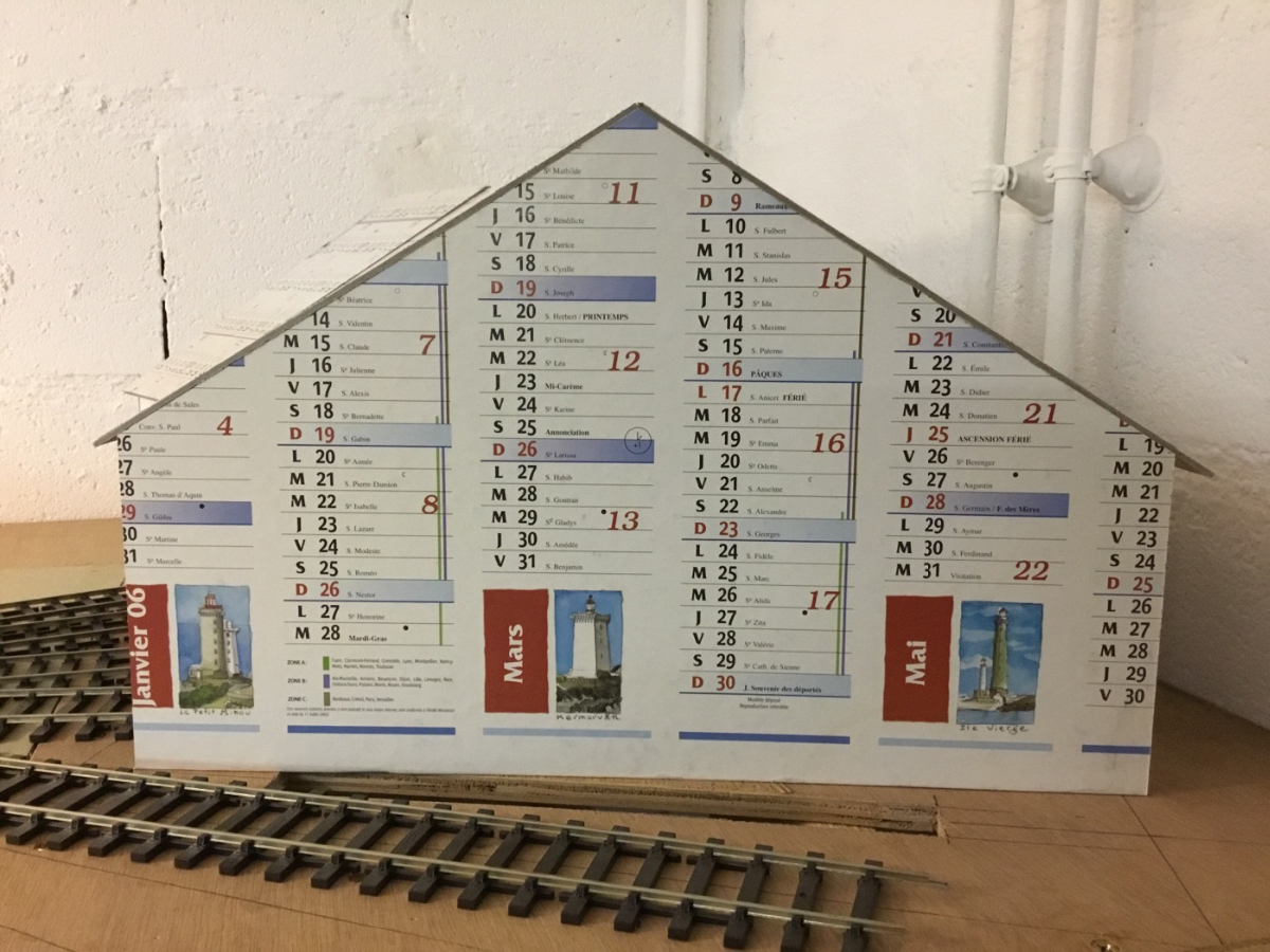 Une semaine un peu chargée loin du modélisme et ça démange de reprendre les outils. Assez peu de nouveauté si ce n'est de la recherche de documents pour la rotonde du dépôt. La particularité des bâtiments du PO est d'avoir des toits assez pentus. La pre maquette de la rotonde donne une idée des volumes et de la géométrie du bâtiment.