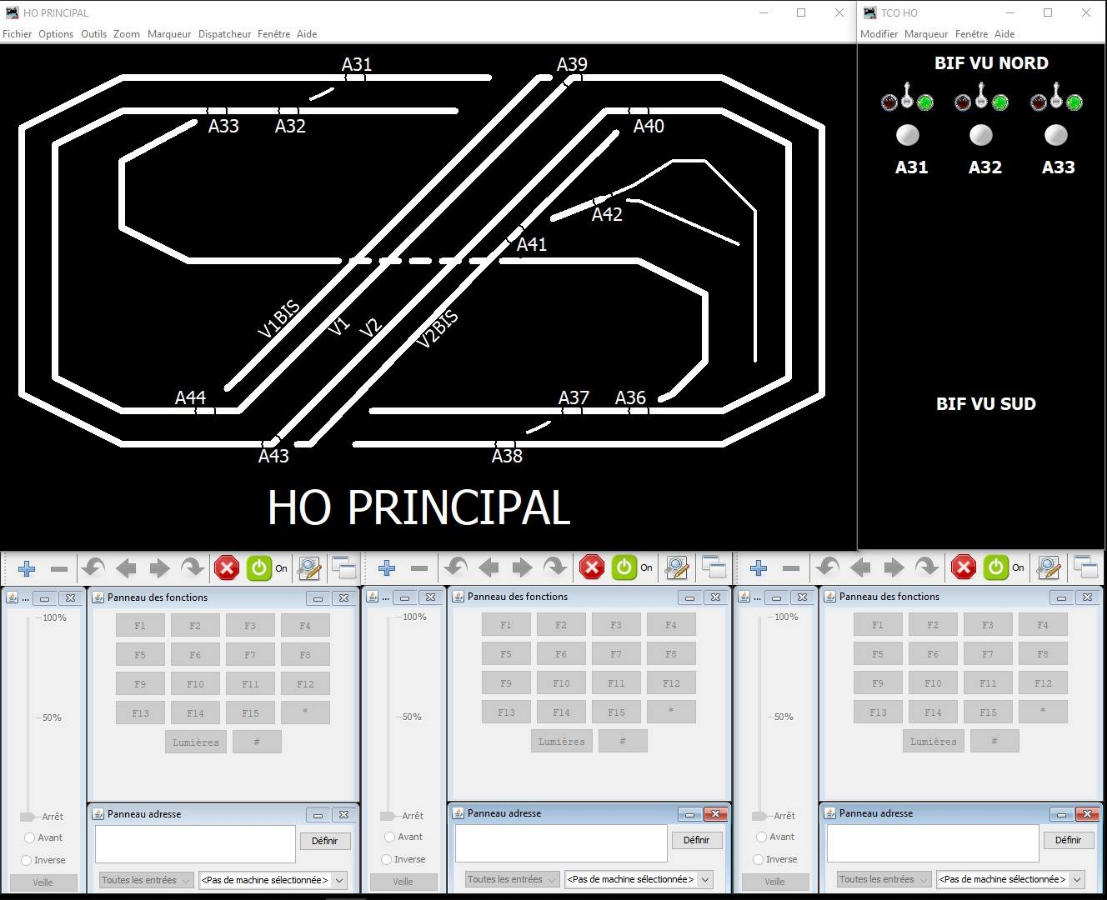 Le cahier des charges est de pouvoir manœuvrer chaque voie indépendamment l'une de l'autre et pouvoir stationner les machines tout en manœuvrant une autre sur la même voie. Chaque voie est couponnée en 4 zones. Les voies sous rotondes sont également commandées par un petit inter.