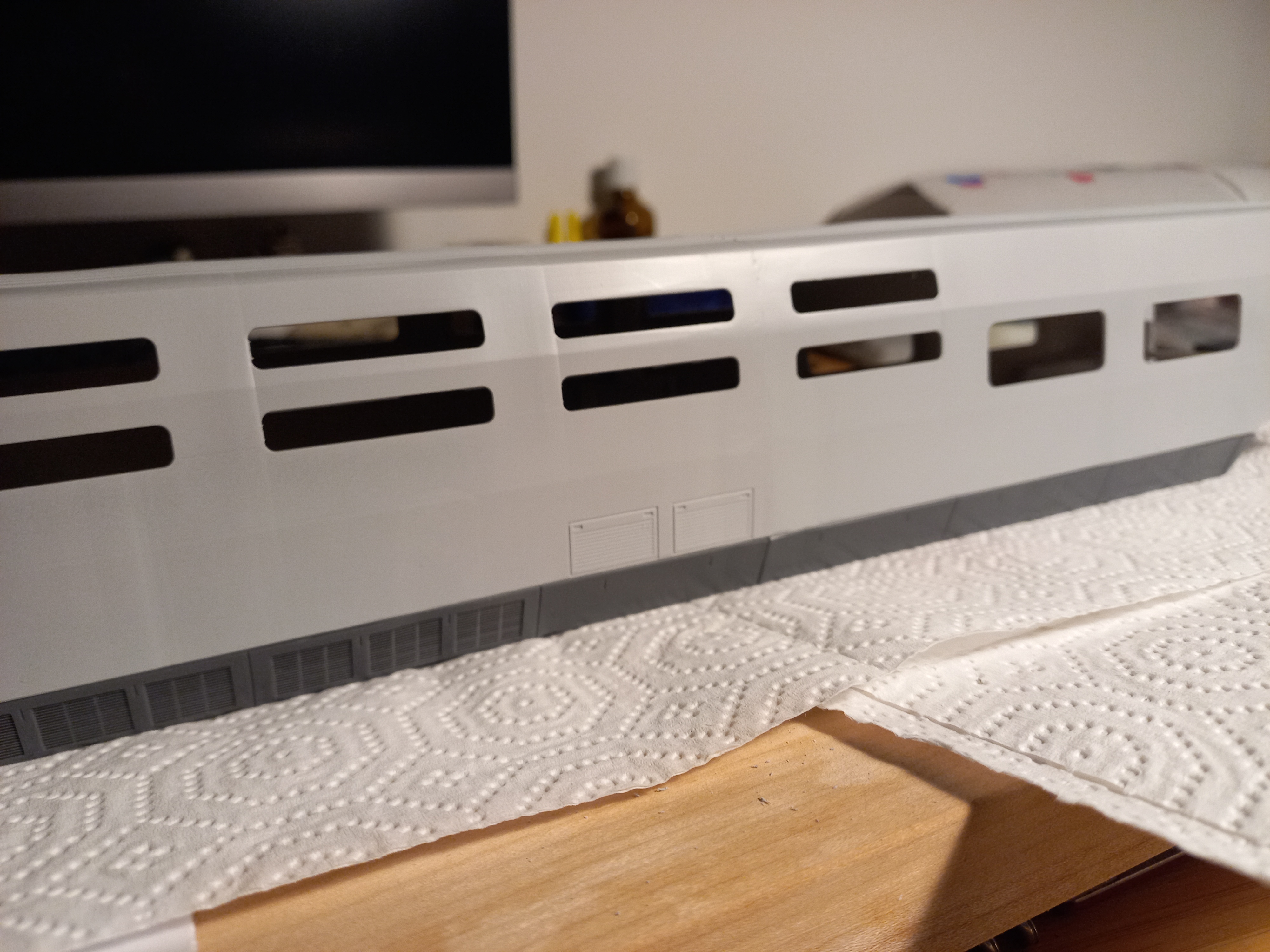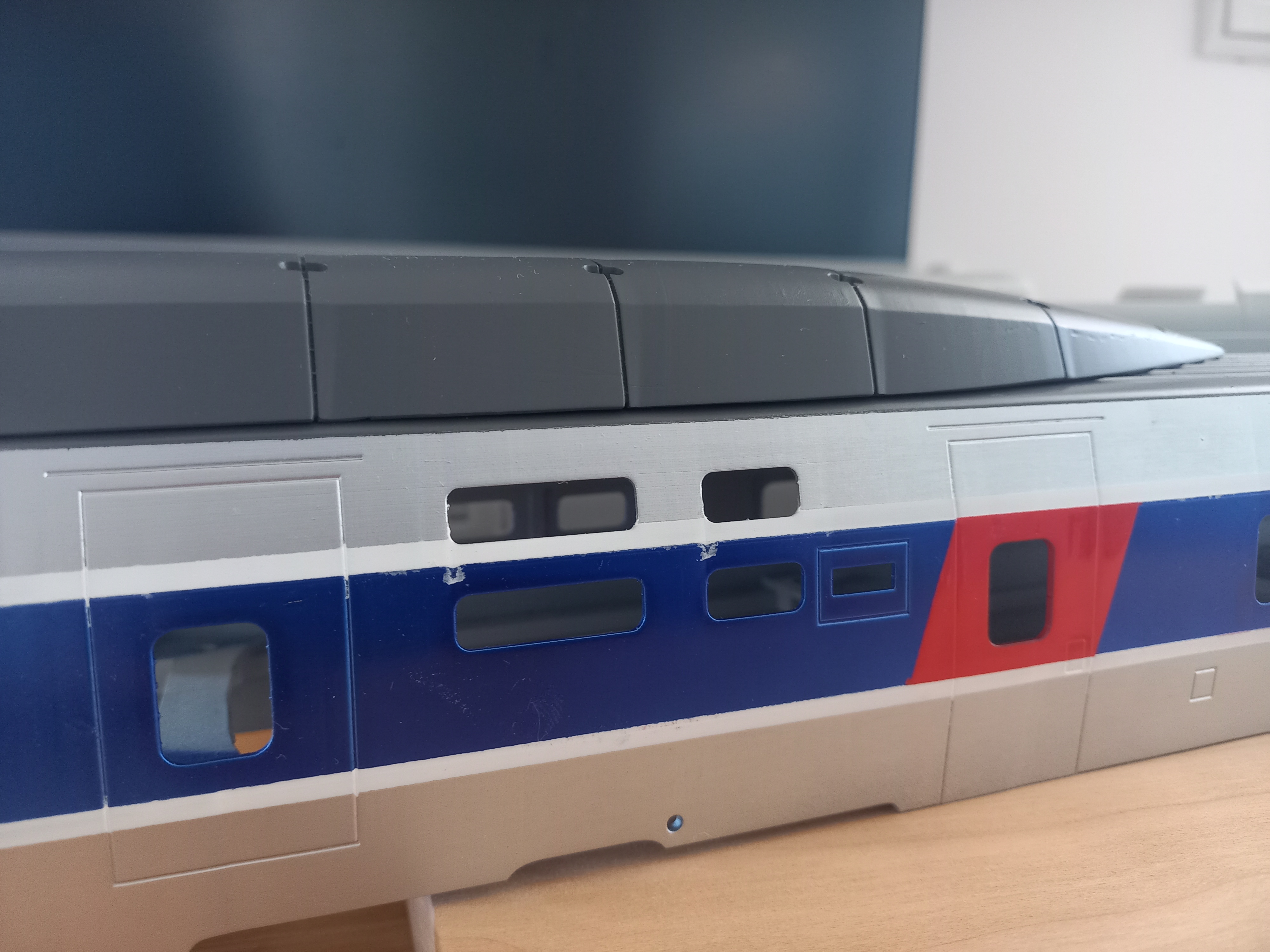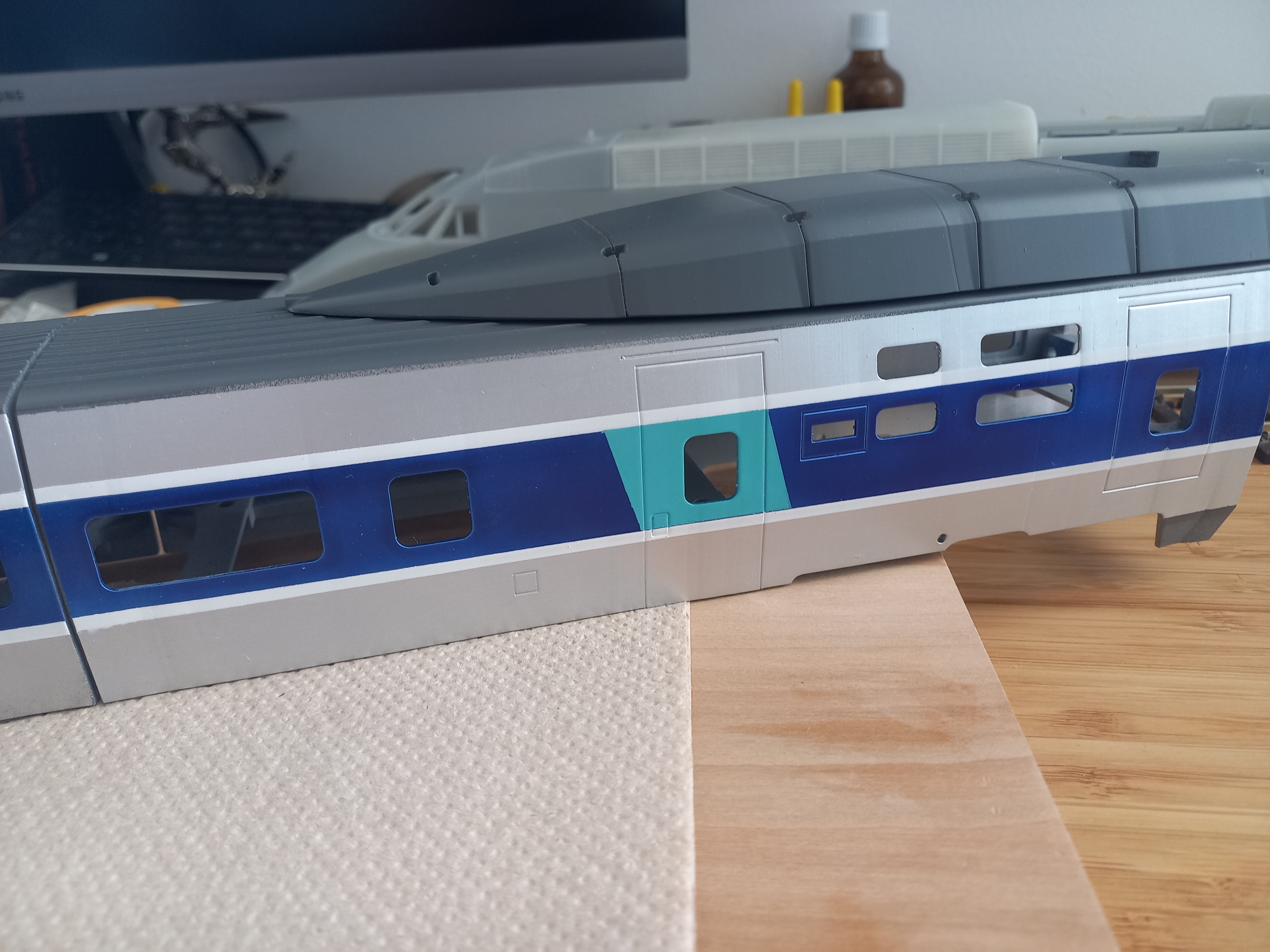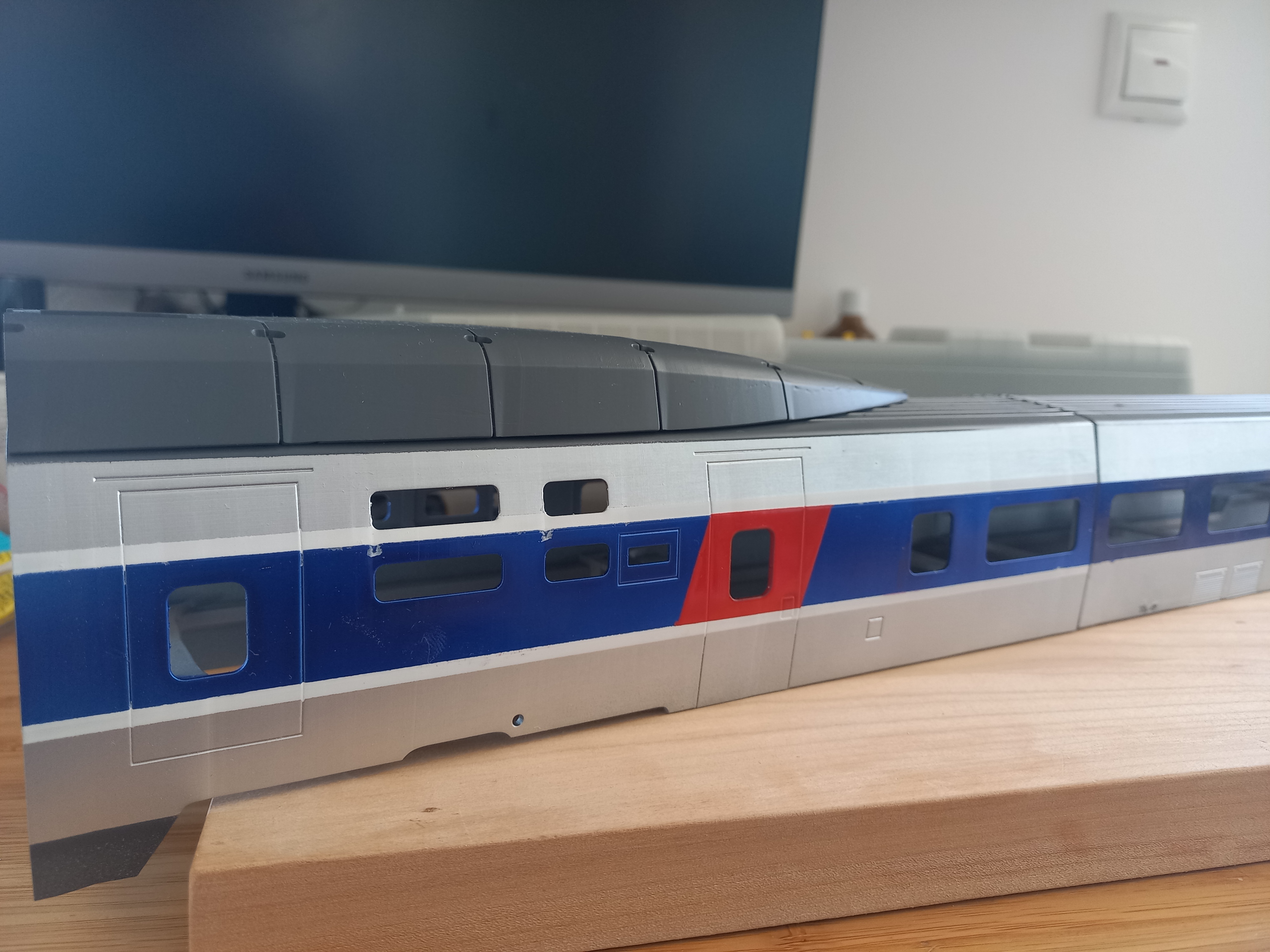 Puis sur les voitures centrales finition sur les joints des deux pièces.