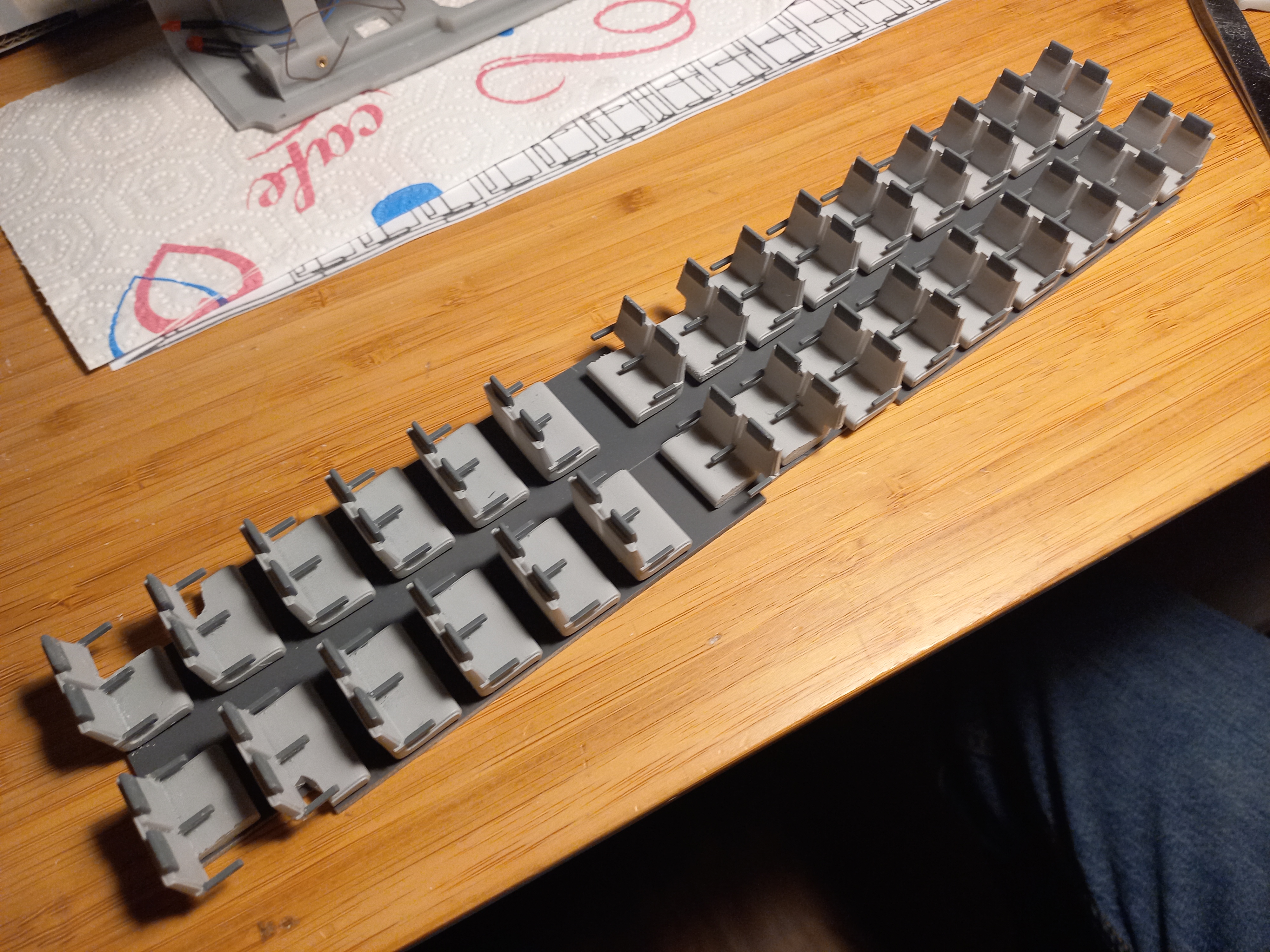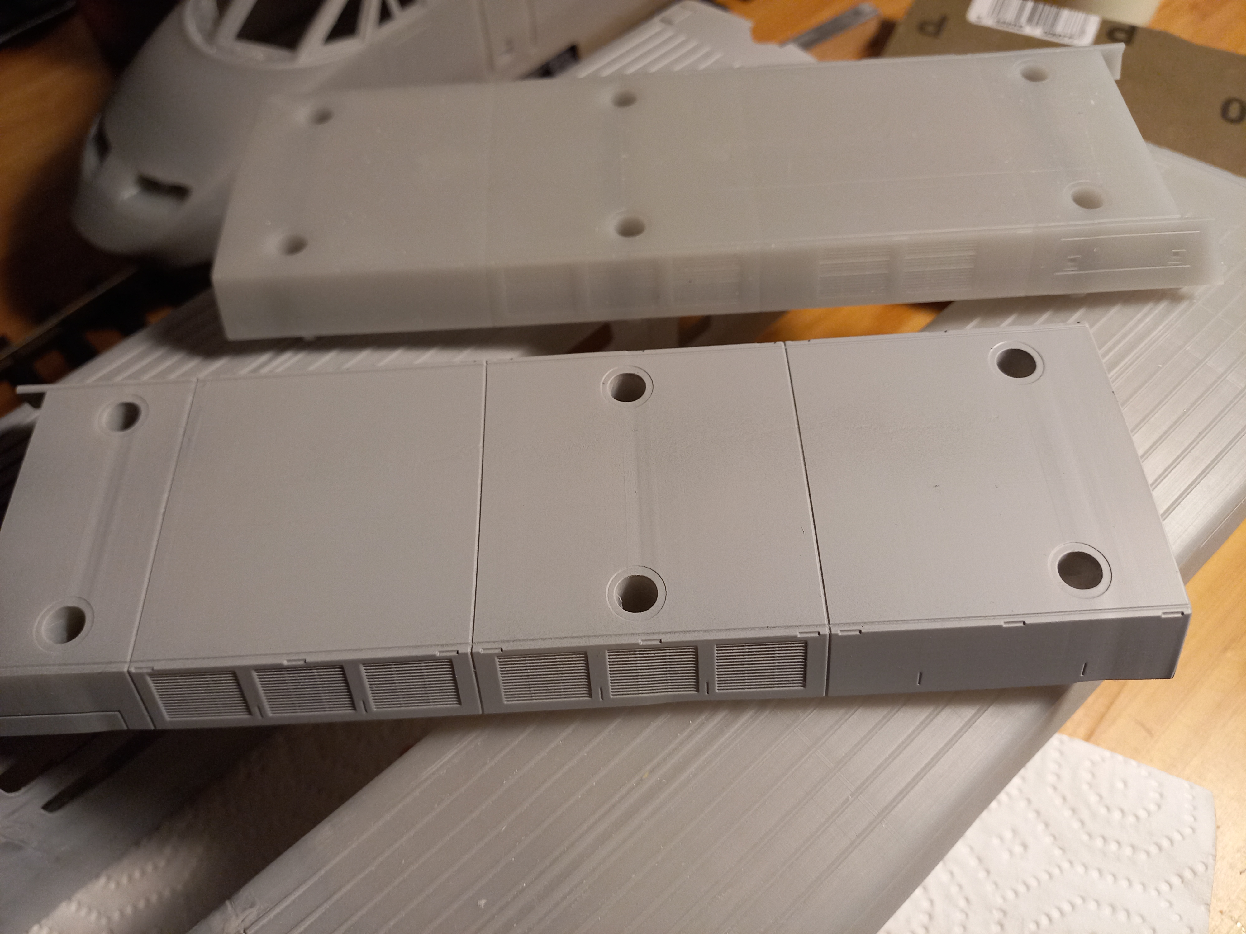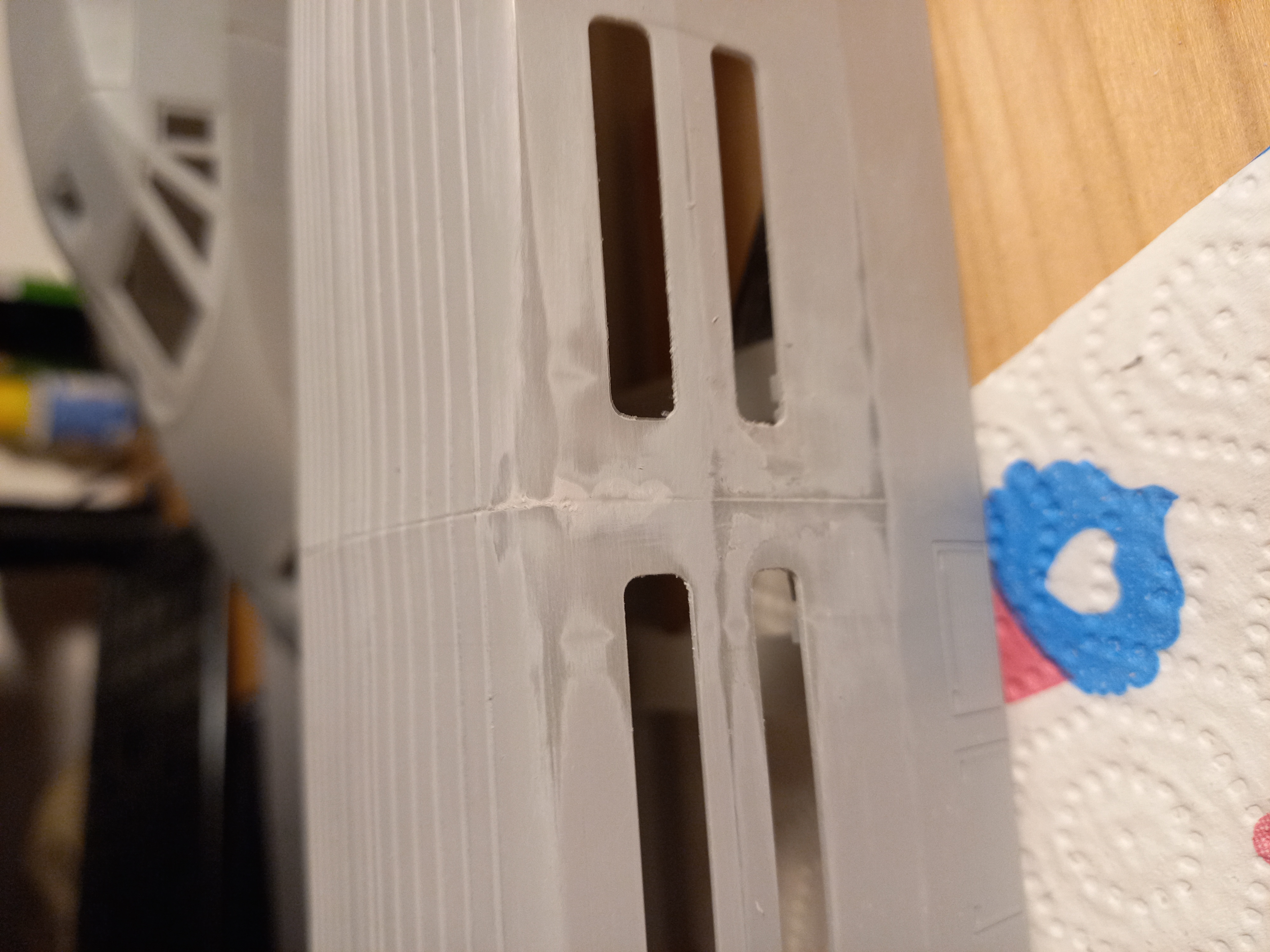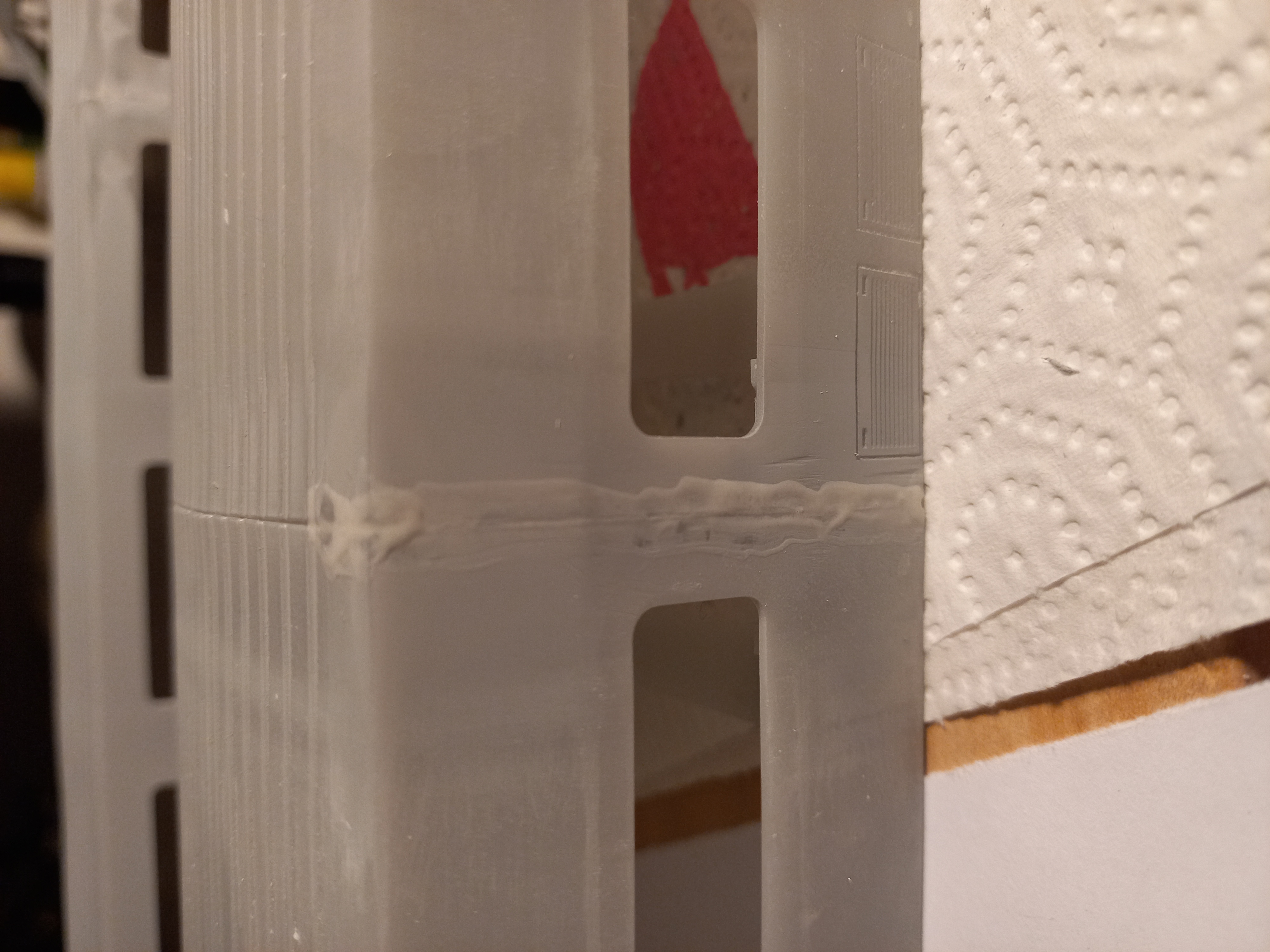 Puis sur les voitures centrales finition sur les joints des deux pièces.