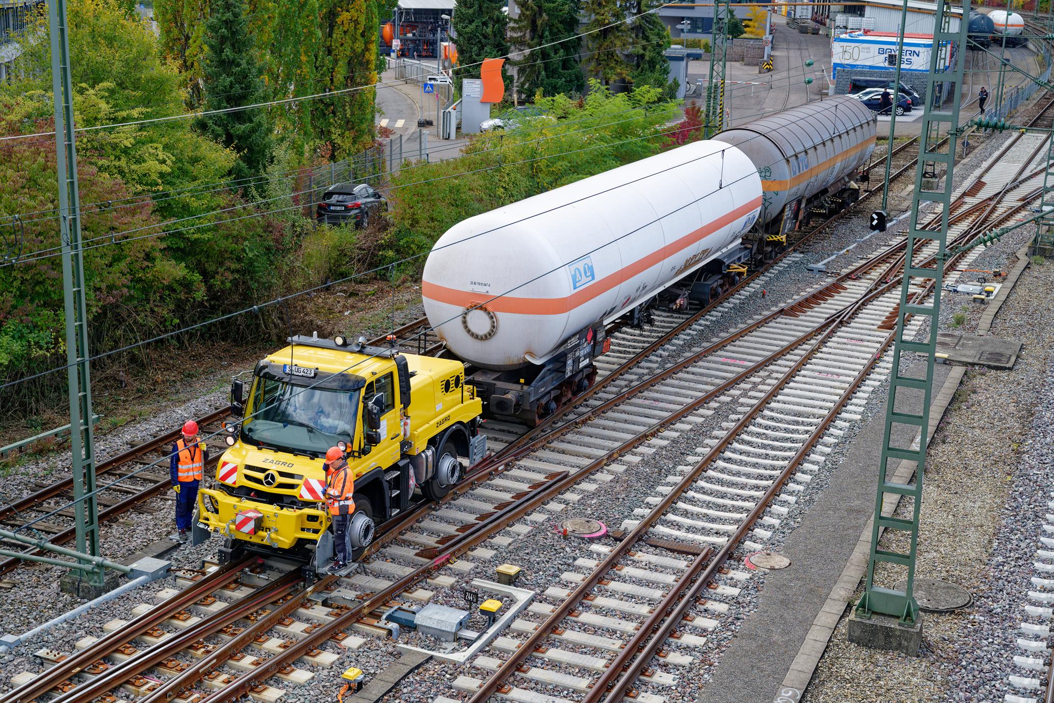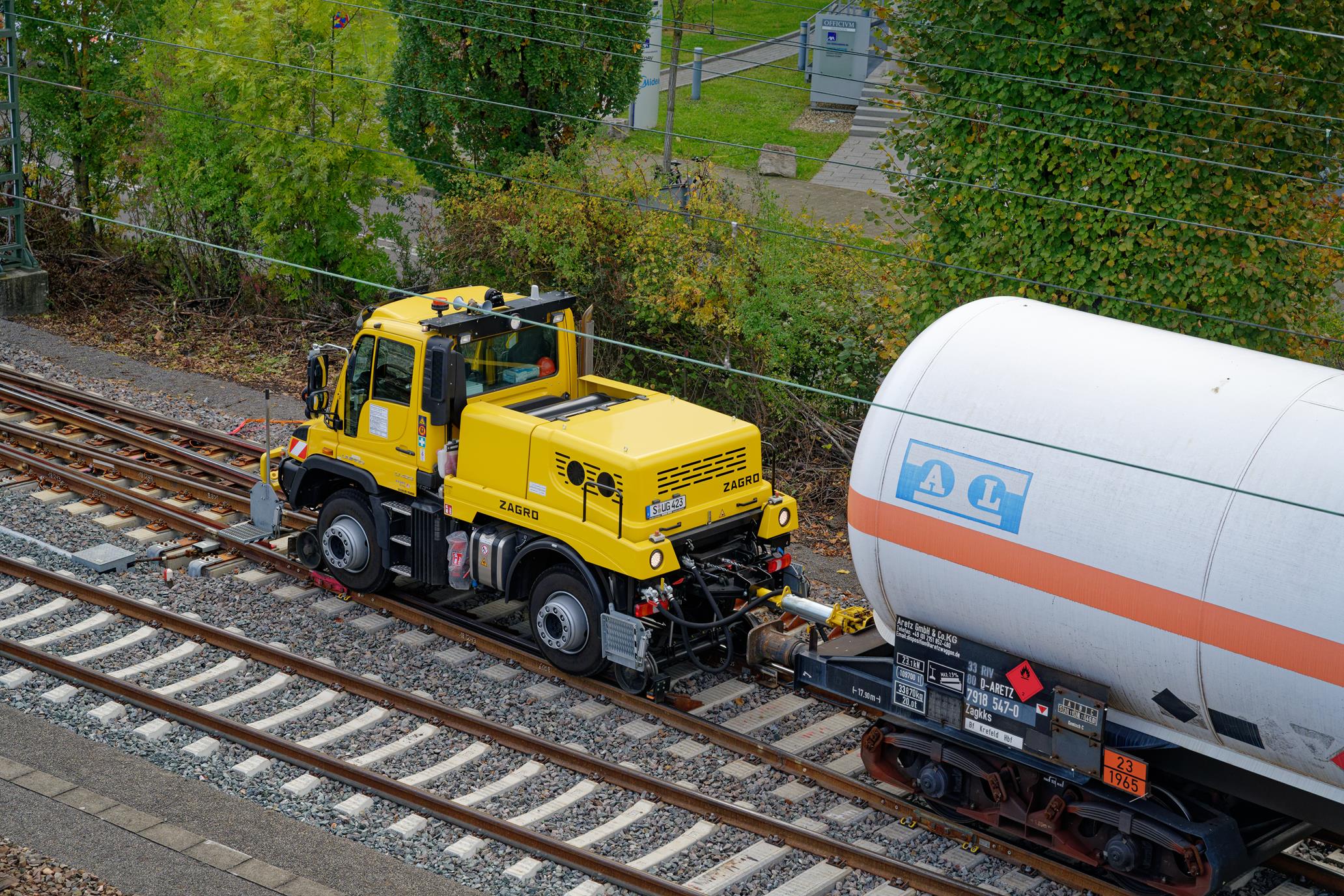 Un marchand de combustibles est installé à Stuttgart-Vaihingen, à côté de la gare. Le gaz et le mazout sont régulièrement livrés par wagons-citernes. Le train est garé sur une voie de dégagement. De là, l'Unimog du marchand vient chercher les wagons par groupes et les ramène après les avoir vidés.