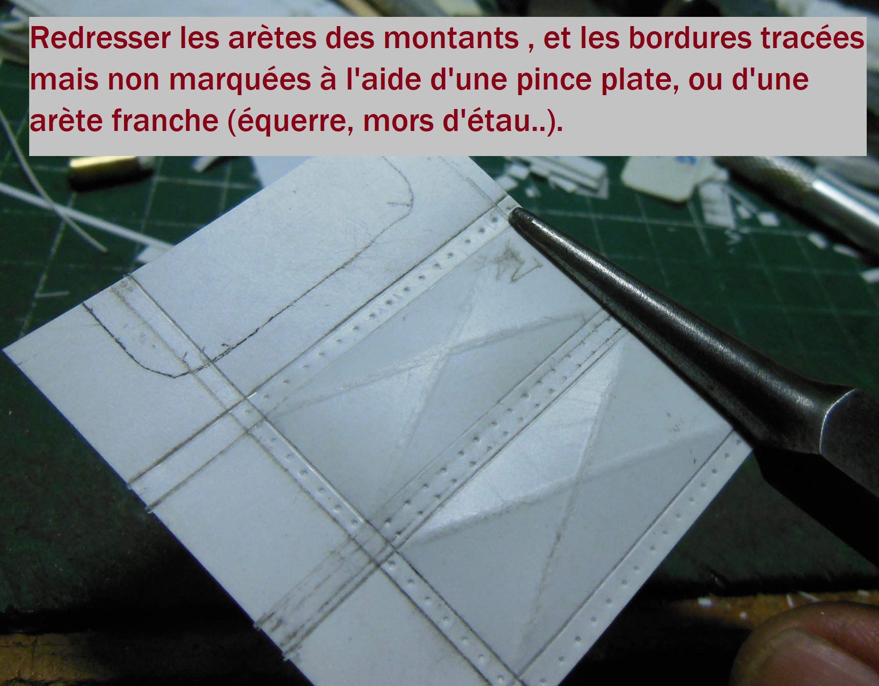Une fois réaliser, je redresse les montants, ceux déjà nervurés les rivets souffre moins de l'opération, sur les bandes qui n'ont pas eu un marquage il faut être plus précis, et parfois repointer quelques rivets.