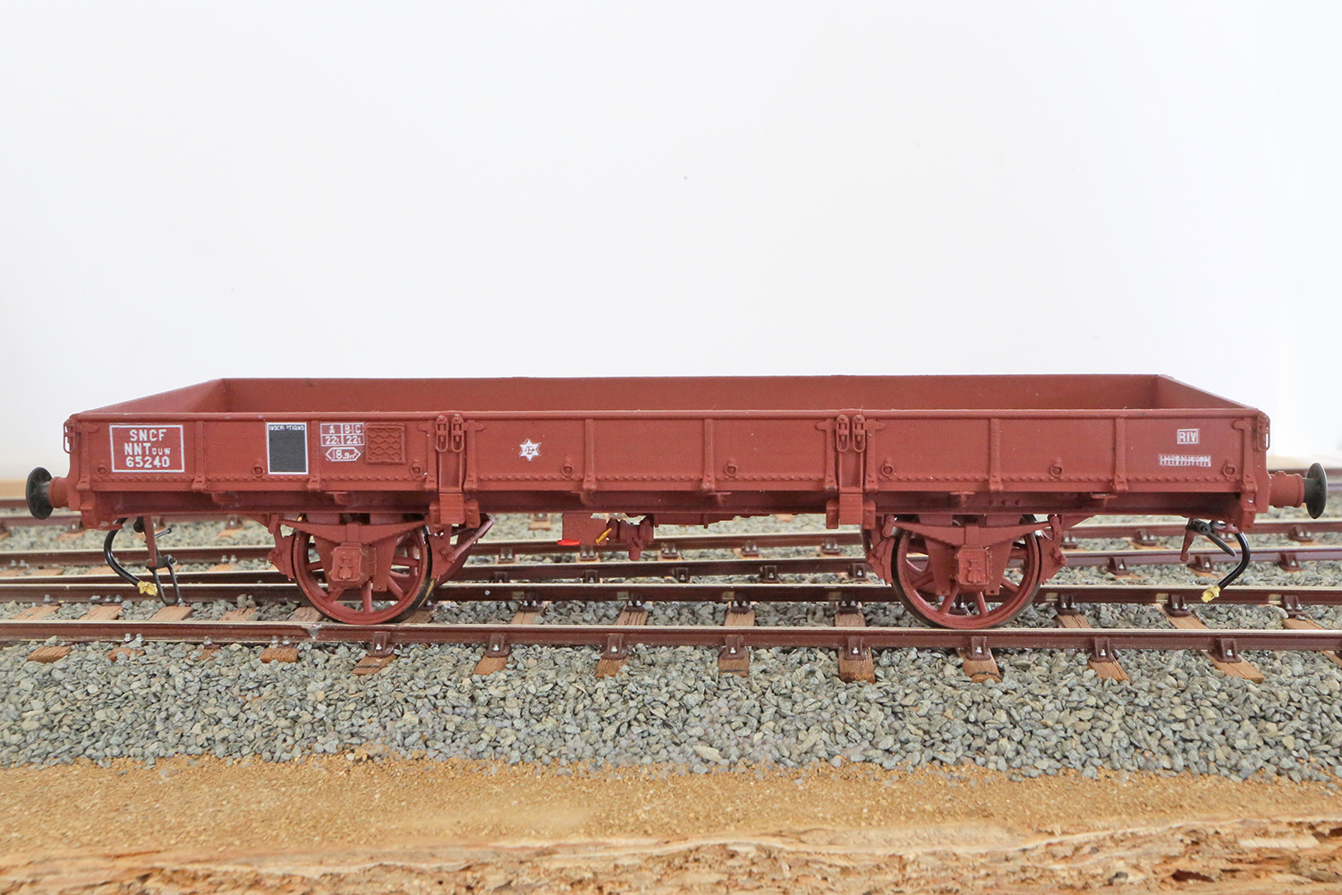 Vu la date que tu as choisi de reproduire tes modèles : après 1958 puisque ton wagon est brun UIC, il ne peut pas être "NNTouw 65240" car cette immatriculation date d'avant 1950...