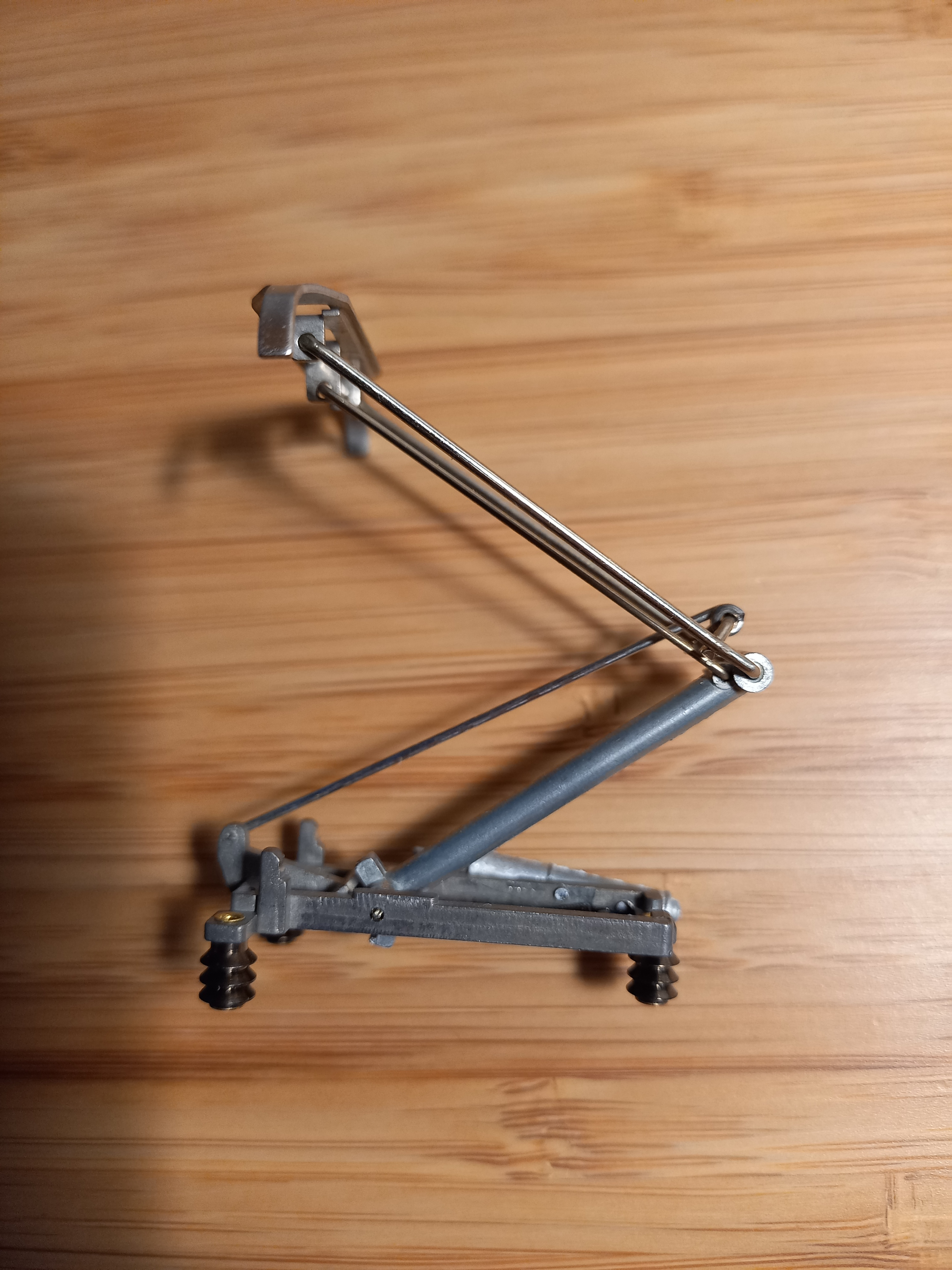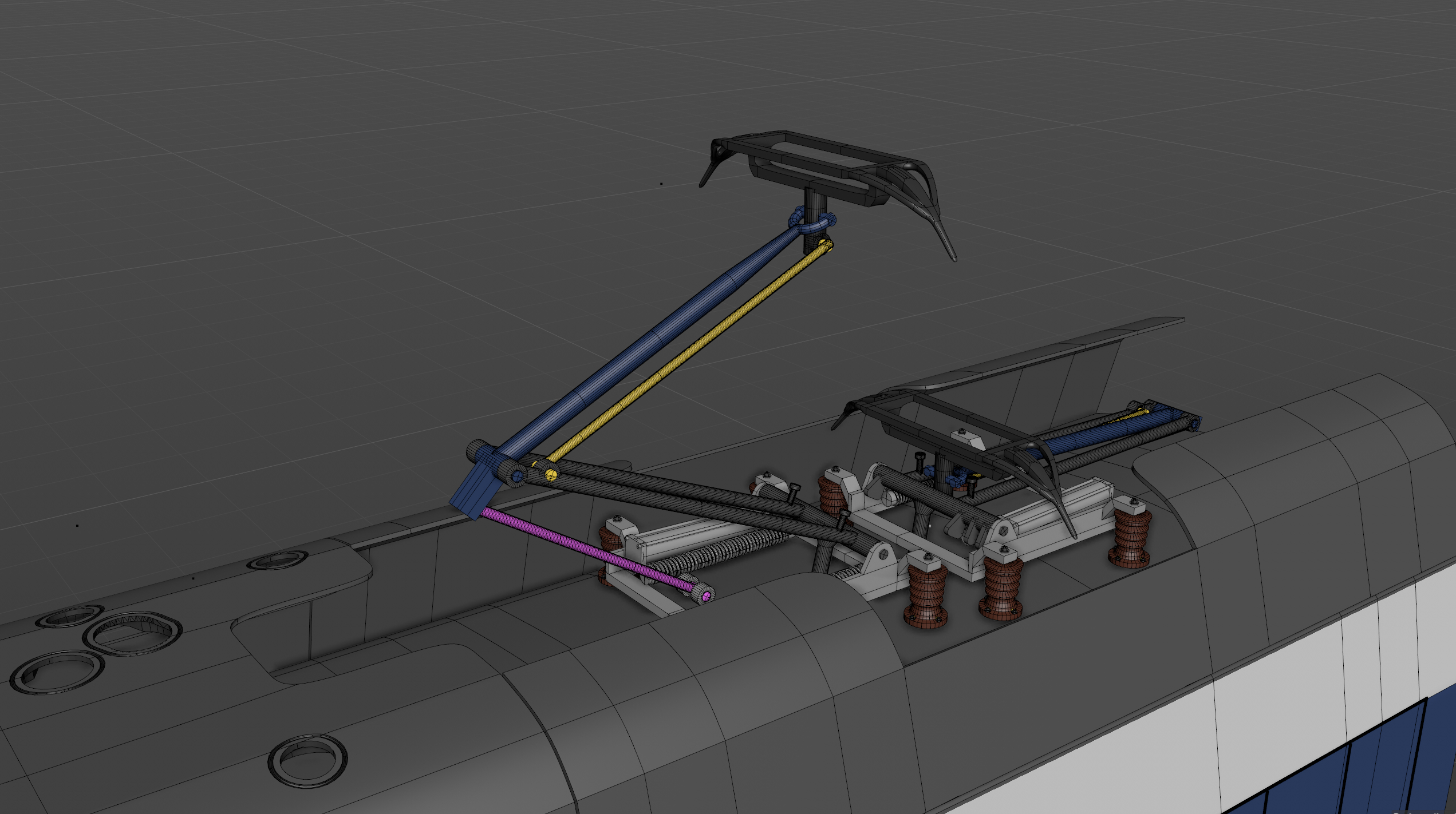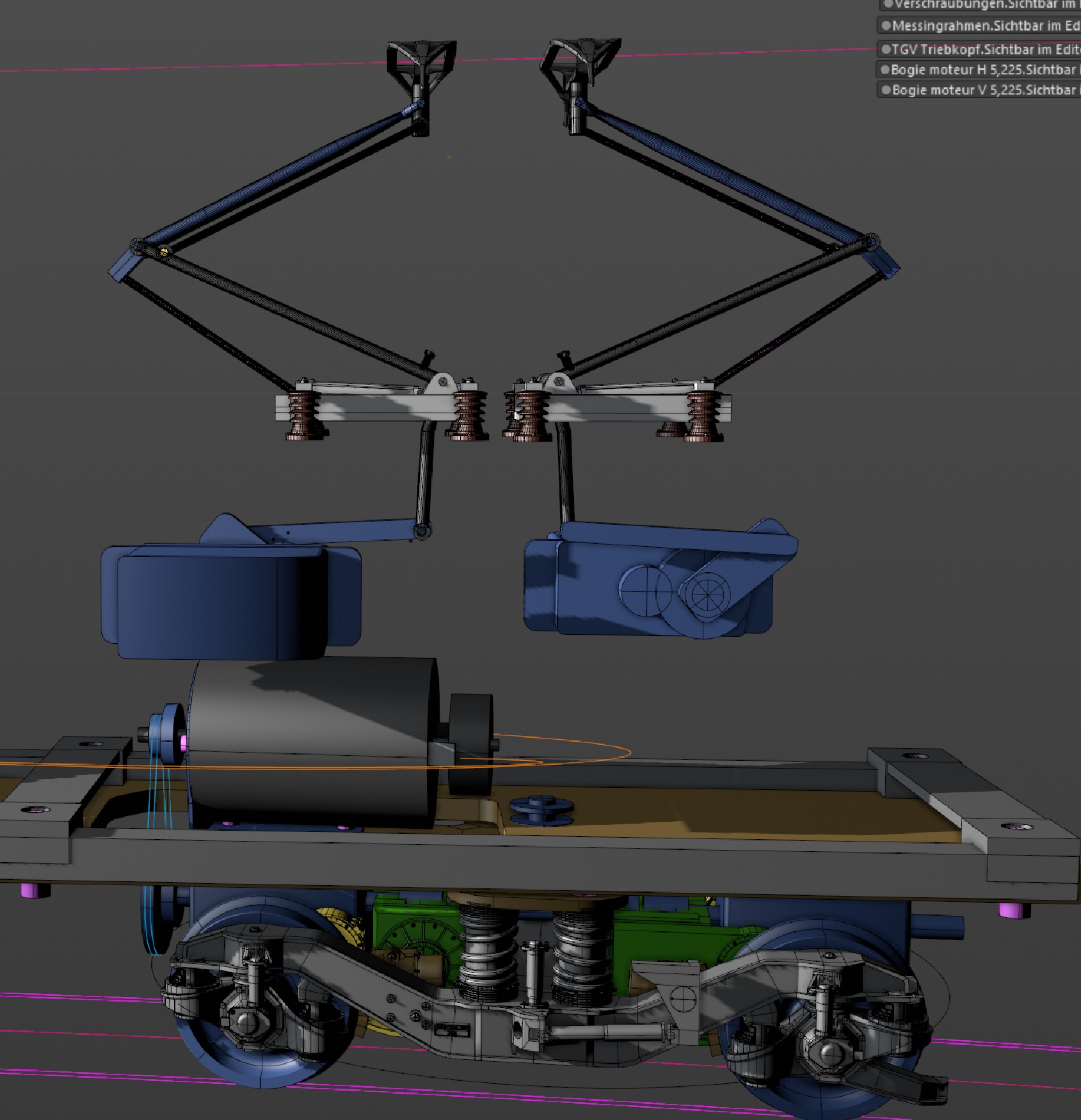 Premiès idées sur les pantografes...j'en ai acheté de Sommerfeldt. Pour les actionner avec des servomoteurs par le bas je devrais y attacher des éléments additionnels, pas tout simple...en plus ils ne correspondent pas vraiment aux pantos TGV.
