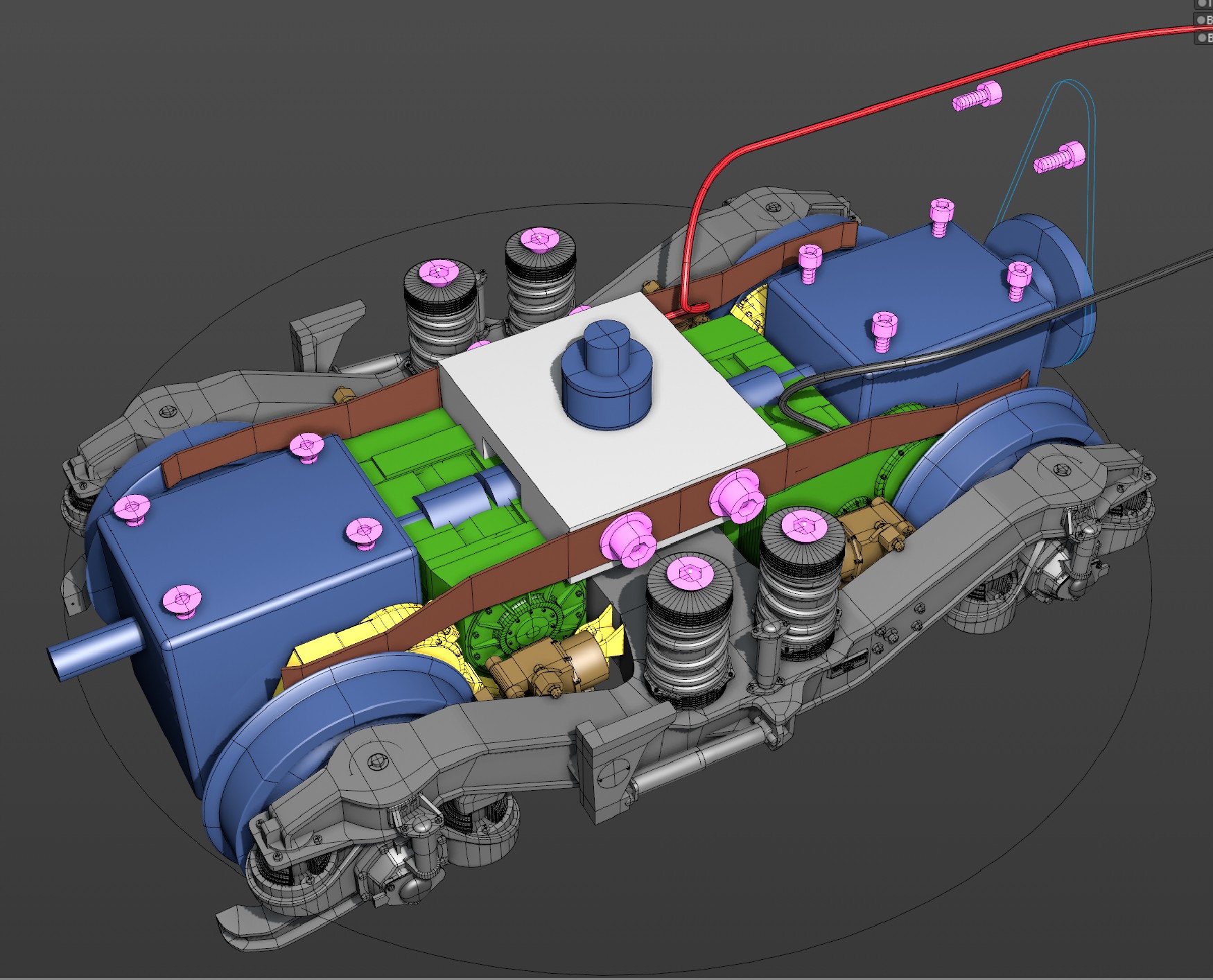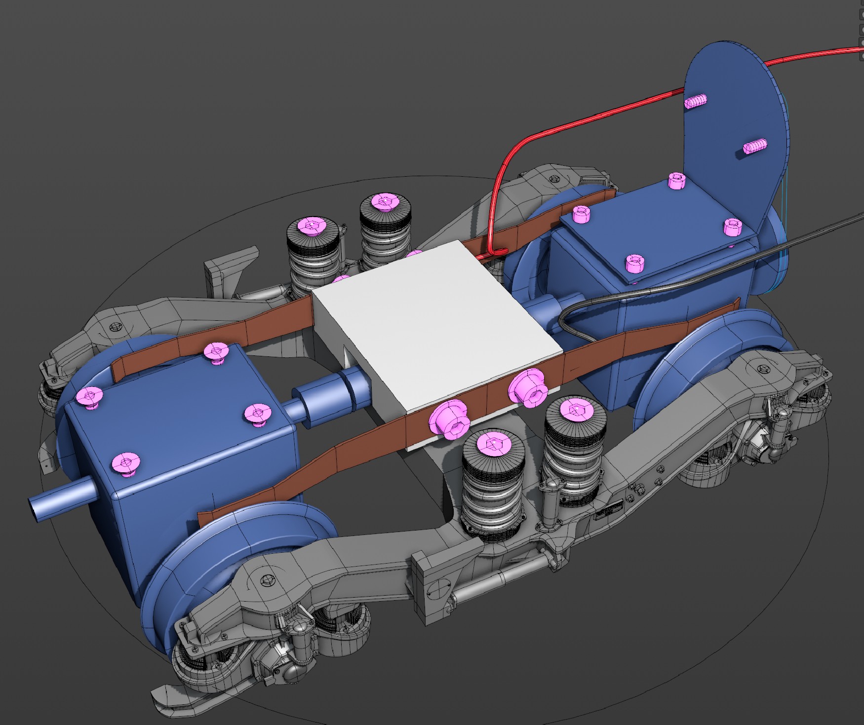 Peux de progrès actuellement, si c'n'est sur les bogies... je suis en train d'approfondir engrenage et motorisation et d'ajouter d'autres détails...