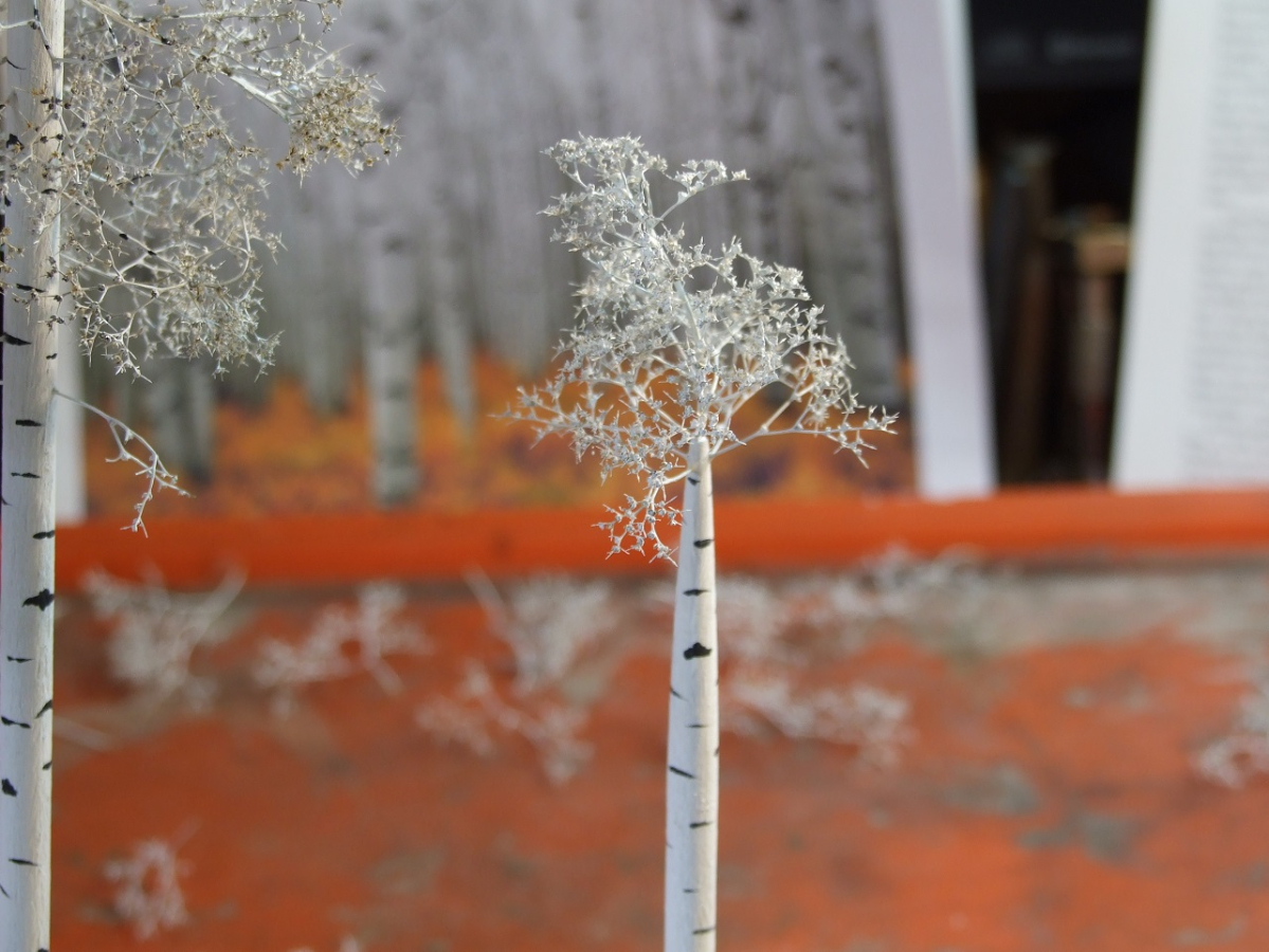 J'oubliais de vous préciser, une fois que le foliage jaune & roux ont été posés, je saupoudre par endroit sur le foliage jaune uniquement