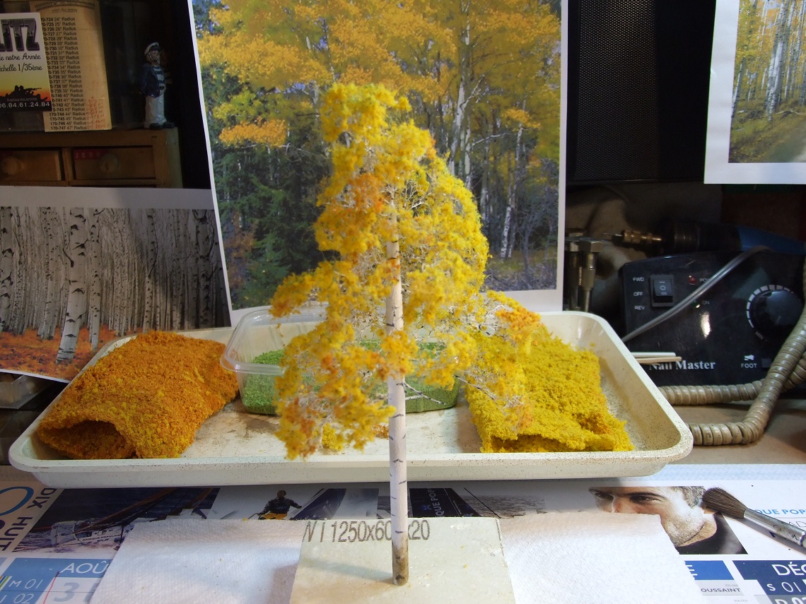 Comme pour les sapins, on commence à poser le foliage en partant du haut vers le bas, surtout bien aérer vos branches, il faut voir à travers