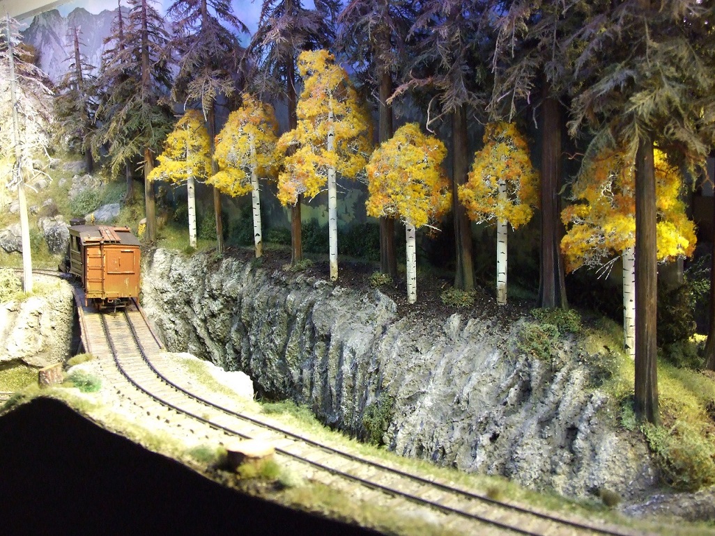 En ce petit matin d'automne, une Porter suivie d'un Box-Car, amène du matériel de forage pour les ouvriers mineurs. Les divers Aspen