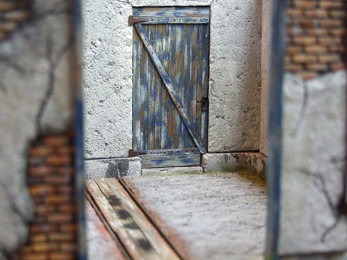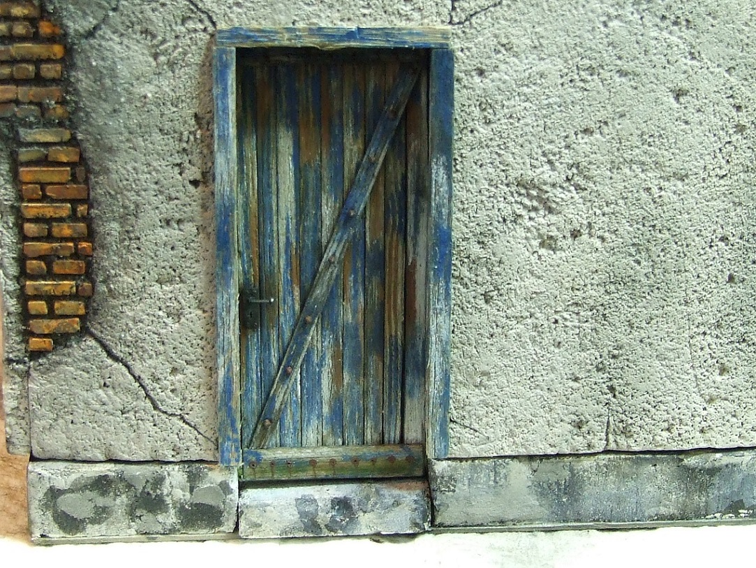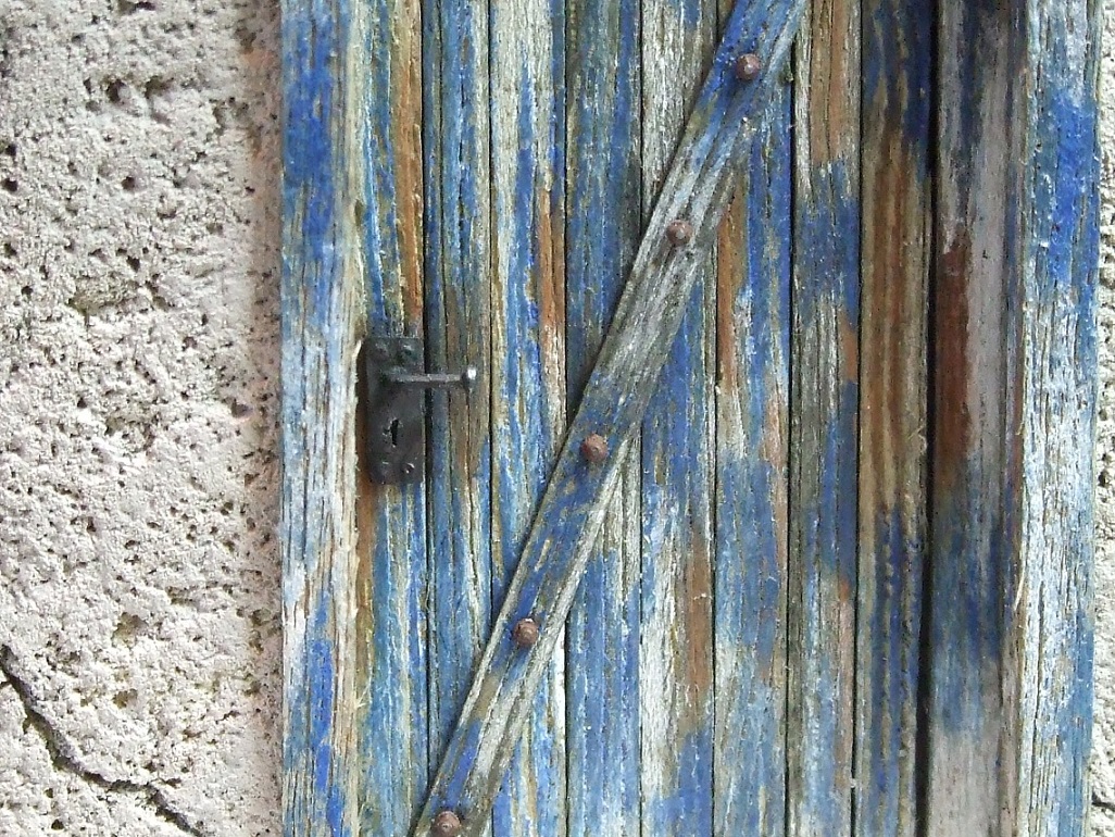 Un gros plan sur cette porte, la poignée a été tournée dans un clou de laiton. Sa ferrure dans une petite bandelette