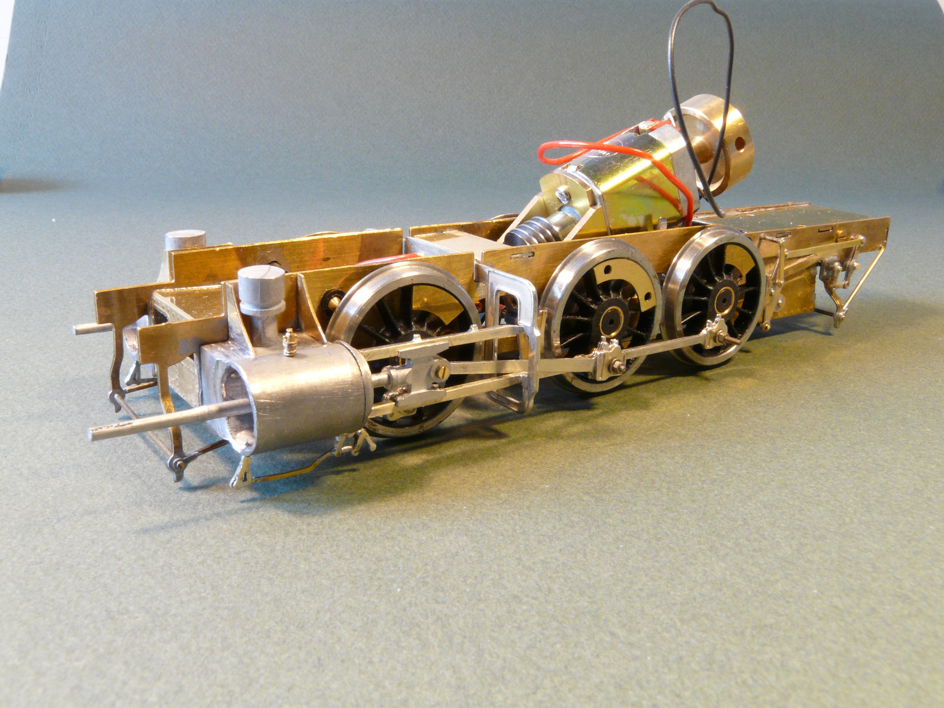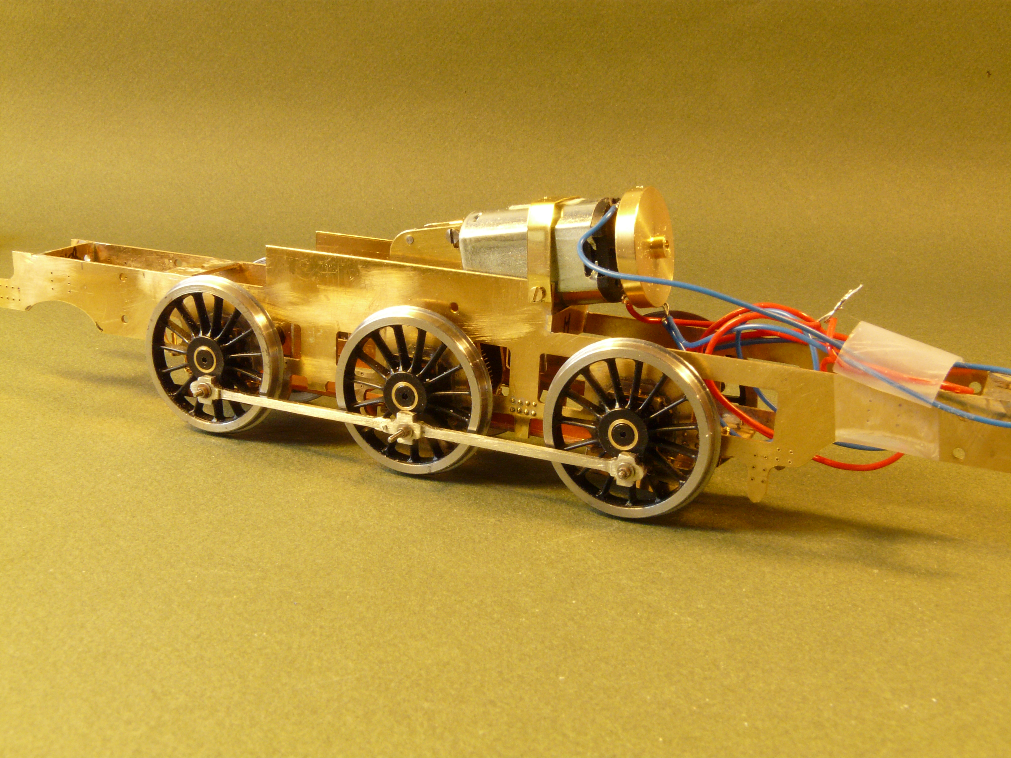 Avec des réalisations 3 D, cela peut être une alternative intéressante: on réalise le châssis en longerons laiton classiques, on monte un bloc moteur et on relie les roues entre elles par des transmissions par chaîne. Tout le reste de l'embiellage peut être fait en 3 D matière indifférente, le réglage des bielles devenant ainsi plus simple puisqu'il n'y a plus à s'assurer de l'égalité entre les diverses distances axes d'essieux/axes de bielle.