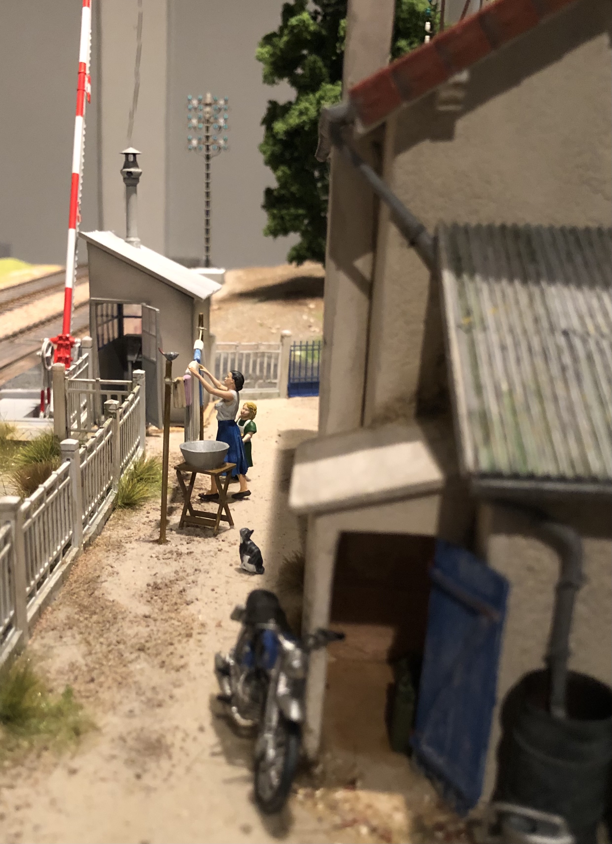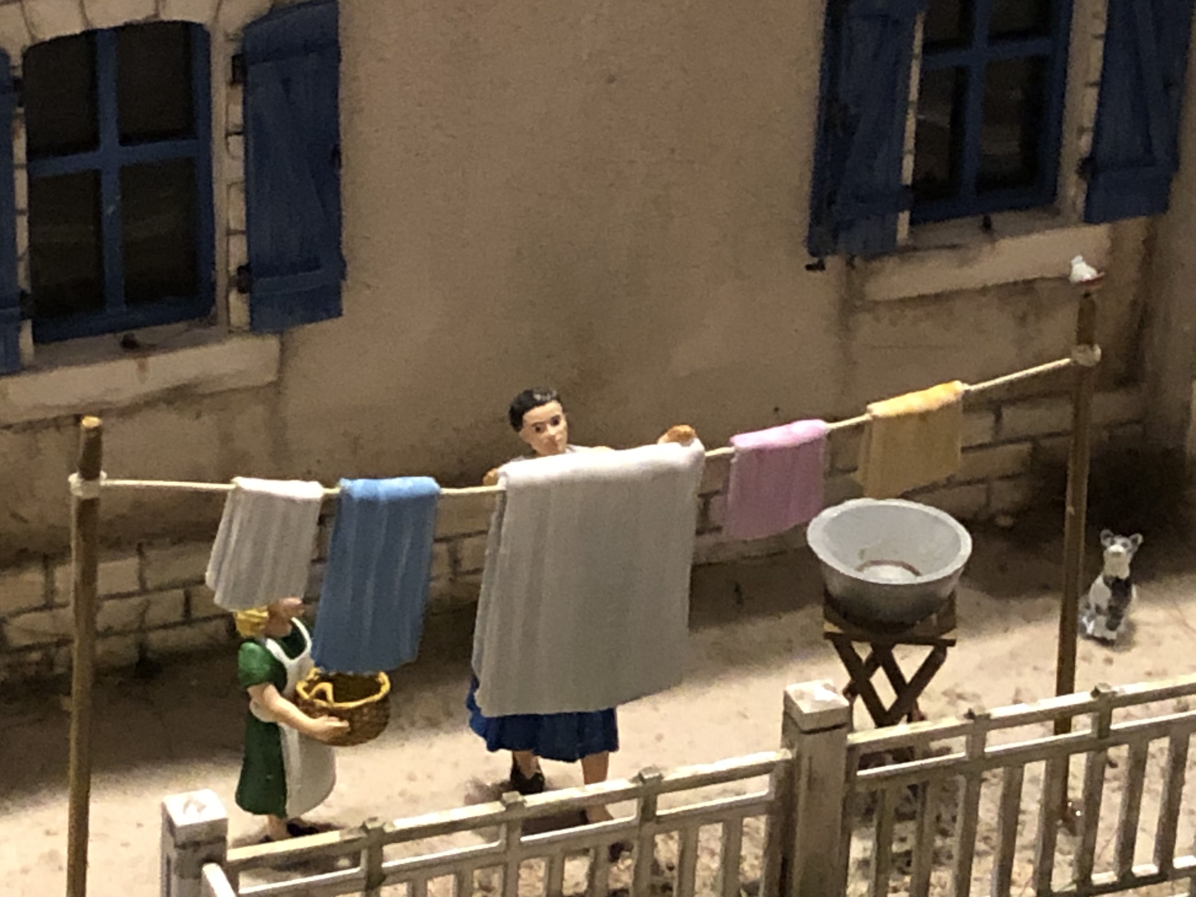 Un set de figurines proposé sur Cults 3D. 18 € de memoire. Imprimé par mes soins après ajustement de l’échelle. Les poteaux et la corde à linge sont aussi dans le set mais j’ai remplacé par du tube laiton de 1,5mm les poteaux et un fil laiton de 0,5mm pour la corde