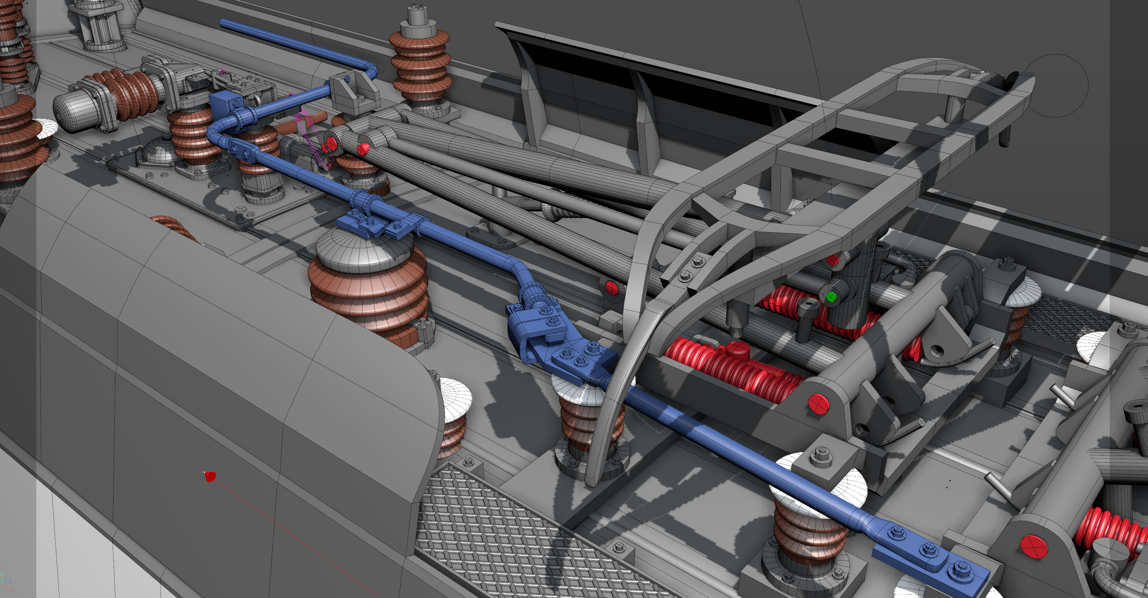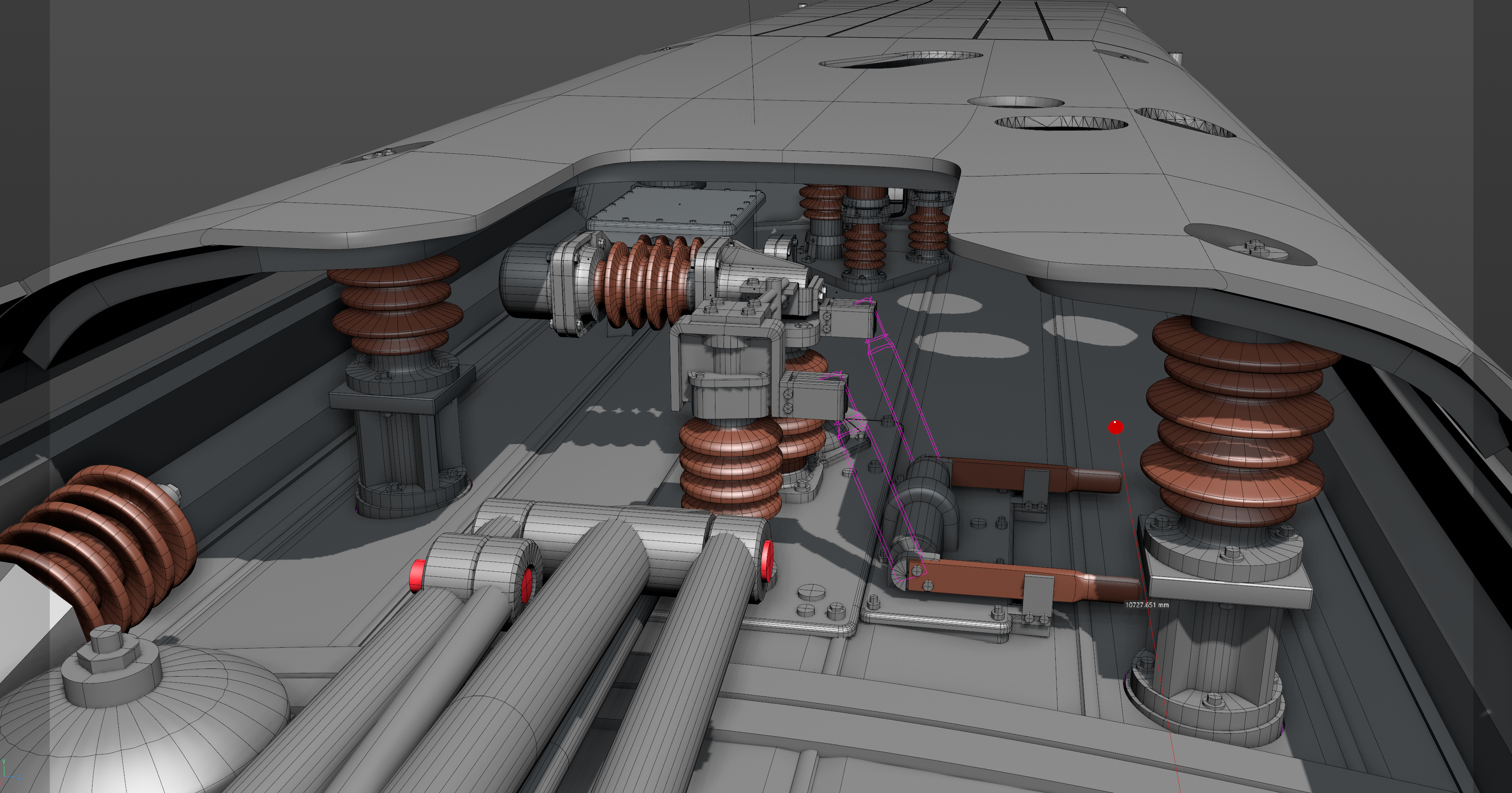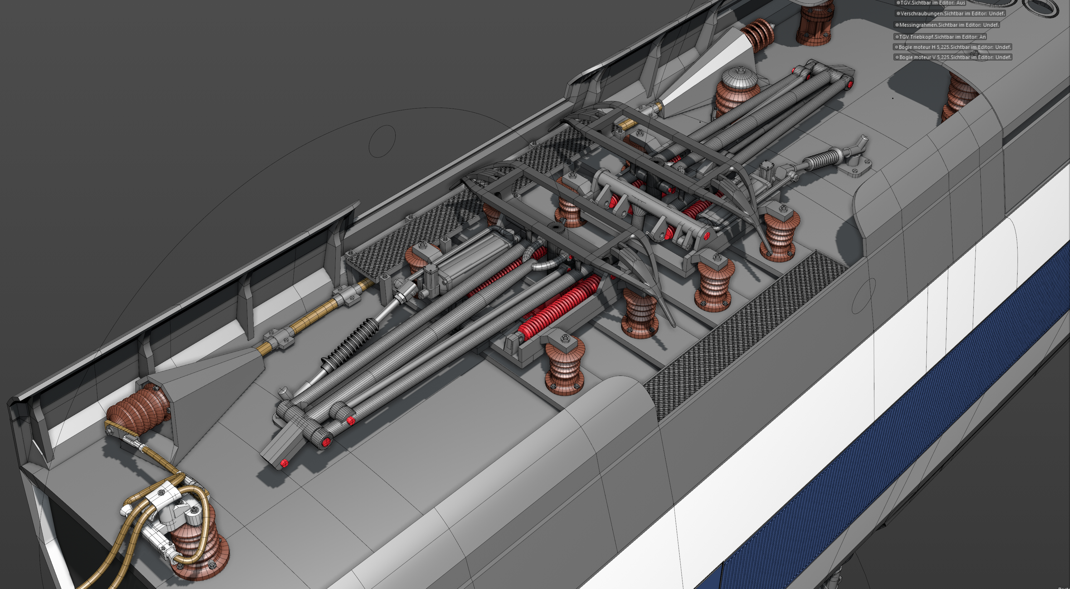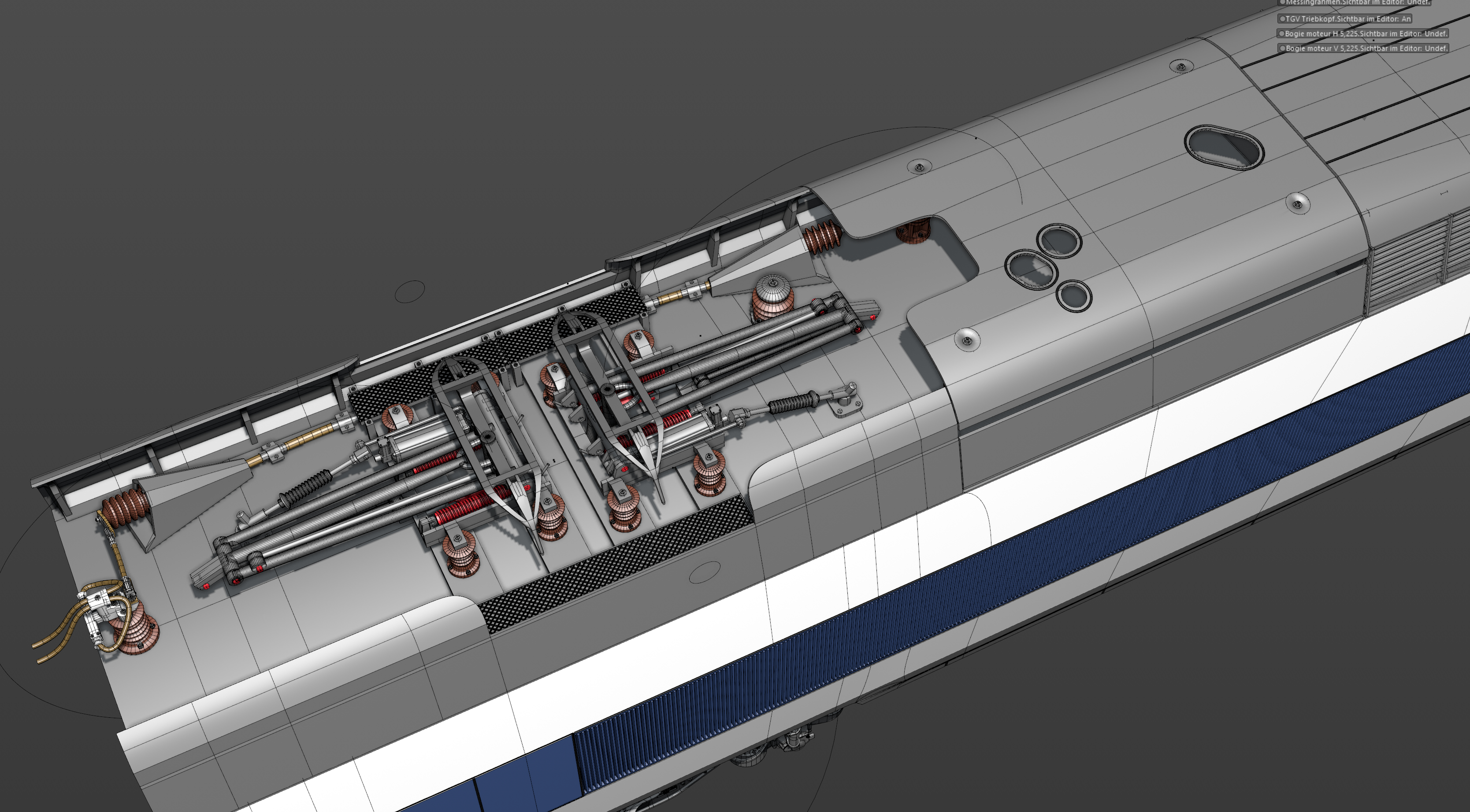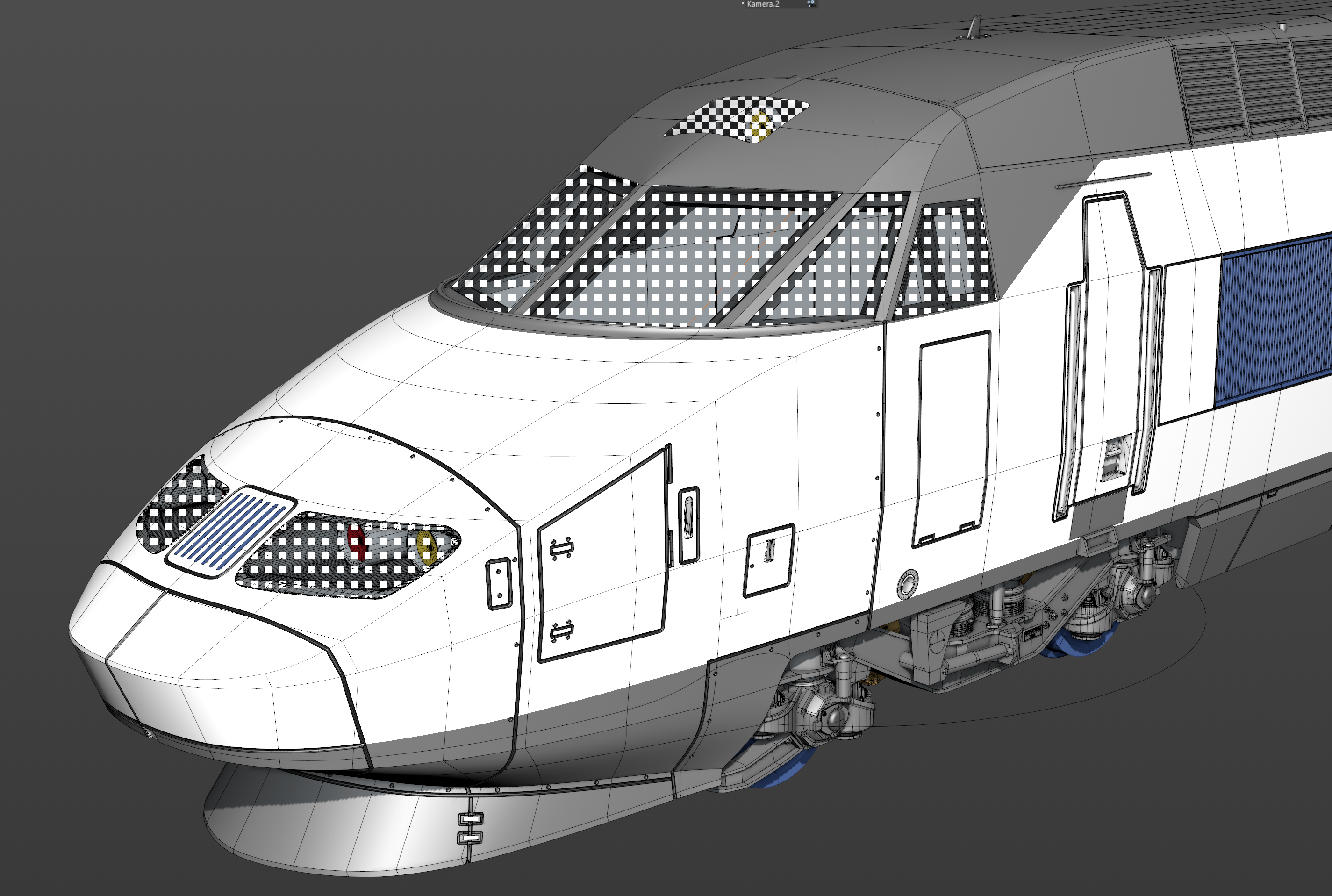 Ça va me permettre d'ajouter un tas de détails et surtout de corriger et approfondir ce que j'avais déja dessiné. Rapproché les pantos, commencé à différencier le 1,5 et le 25 kV, petite corréction du cadre porteur et des sous-structures, integration rainures du toit, trappe d'accès, corréction des carénages latéraux et des trous du capot. En même temps il a fallu ajouter des joint autours des portes et une marche pour le conducteur...bref gros chantier partout :lol: