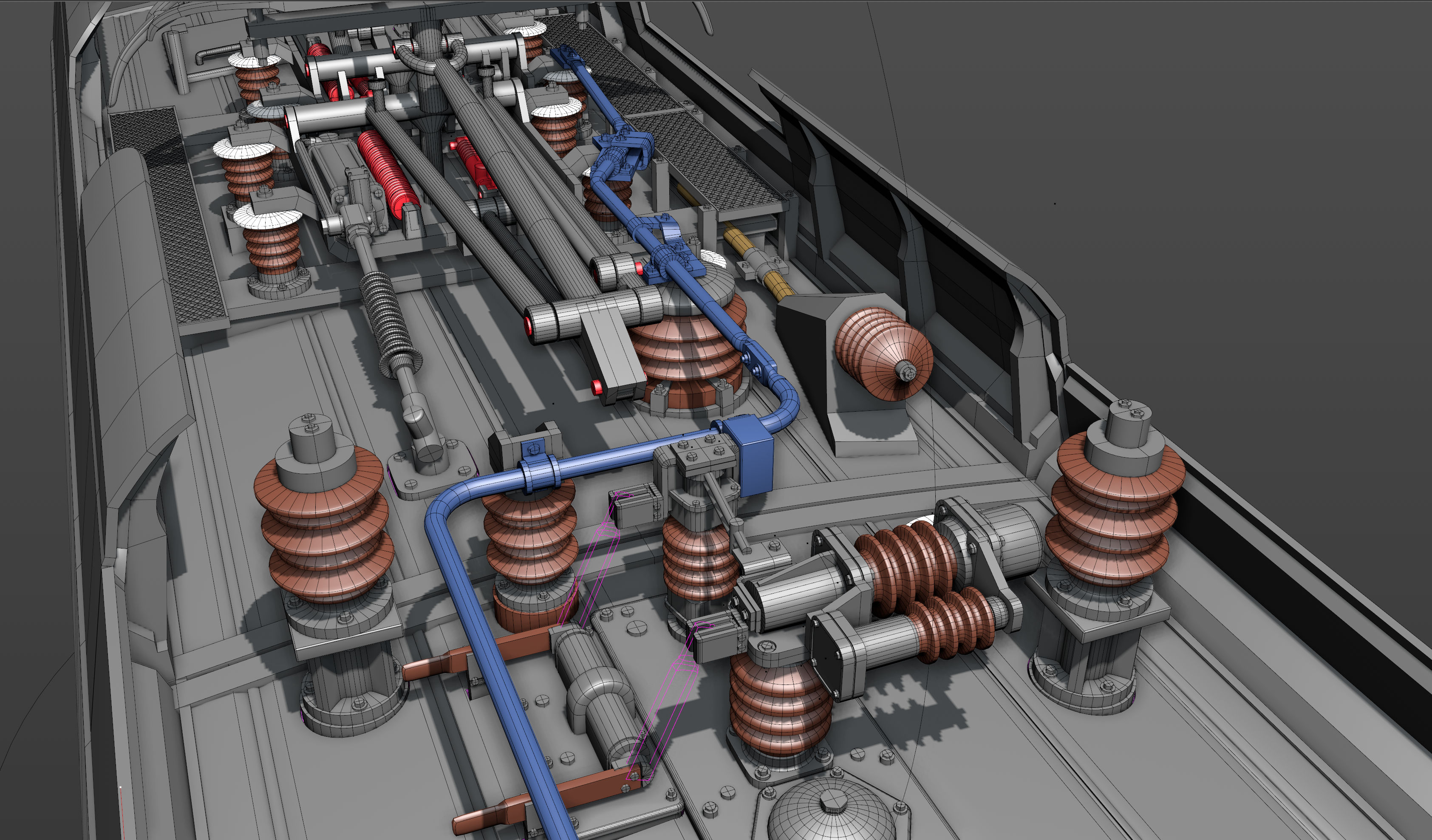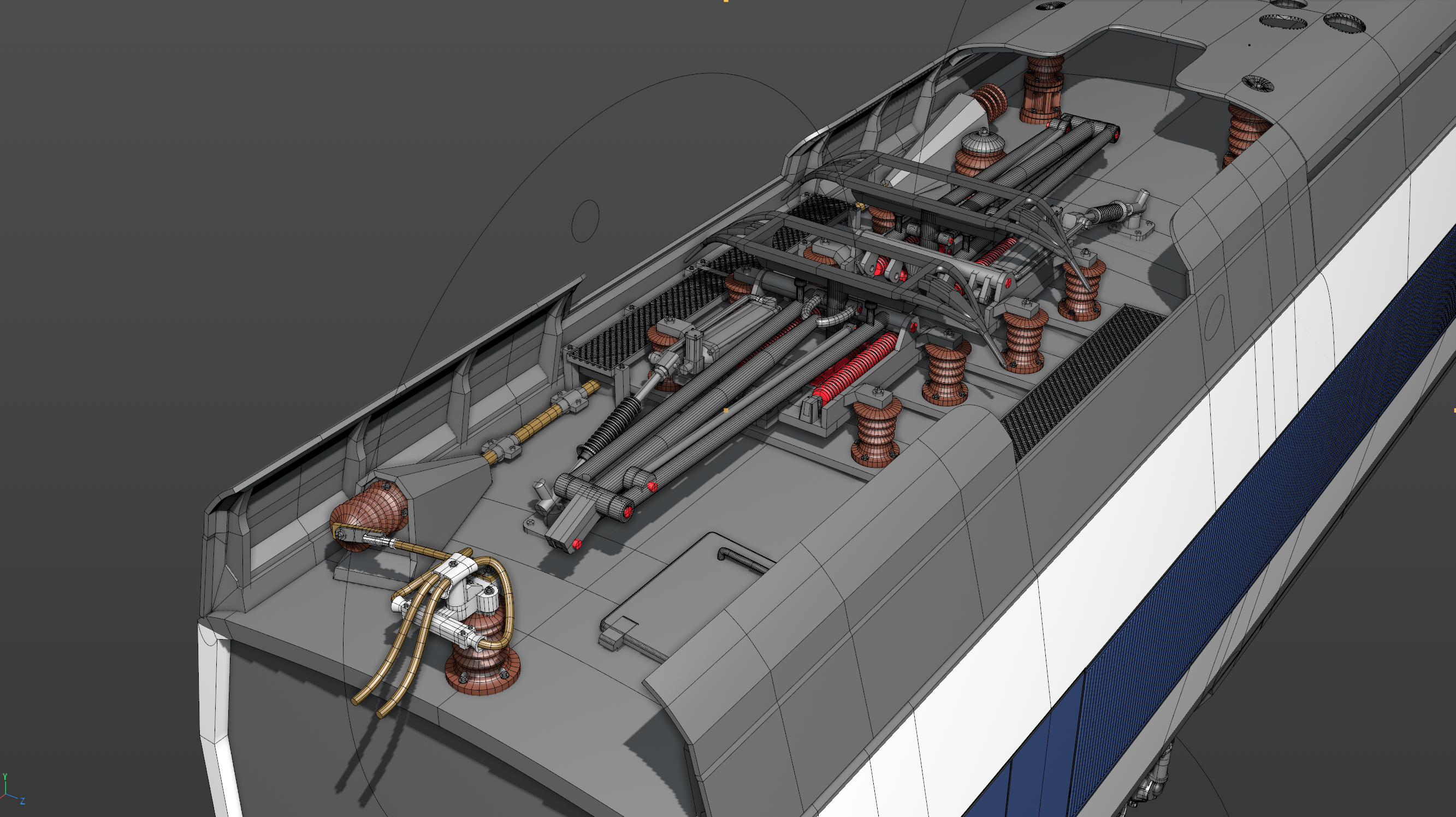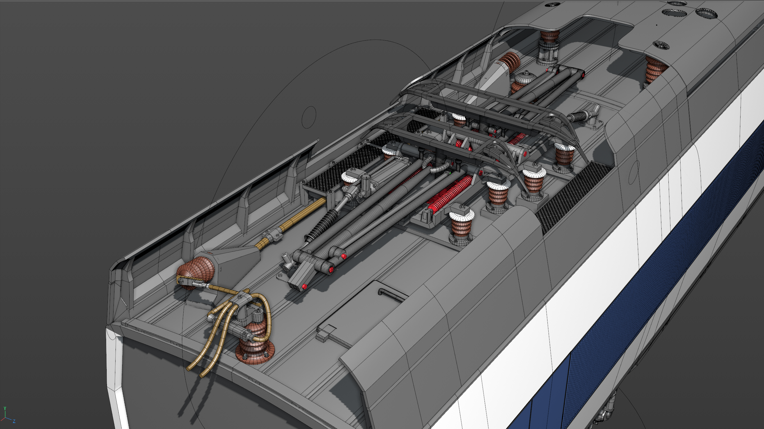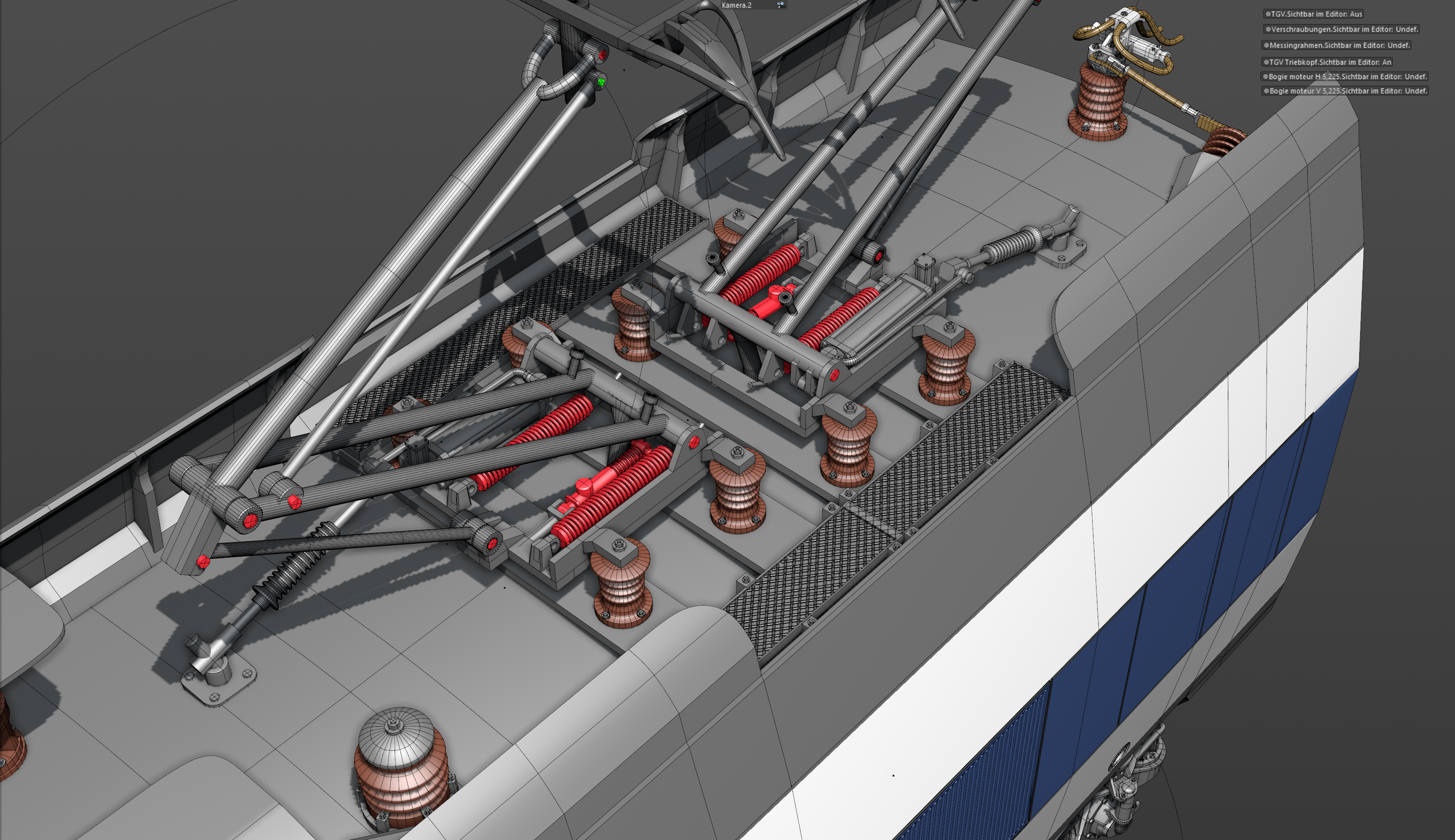 Ça va me permettre d'ajouter un tas de détails et surtout de corriger et approfondir ce que j'avais déja dessiné. Rapproché les pantos, commencé à différencier le 1,5 et le 25 kV, petite corréction du cadre porteur et des sous-structures, integration rainures du toit, trappe d'accès, corréction des carénages latéraux et des trous du capot. En même temps il a fallu ajouter des joint autours des portes et une marche pour le conducteur...bref gros chantier partout :lol: