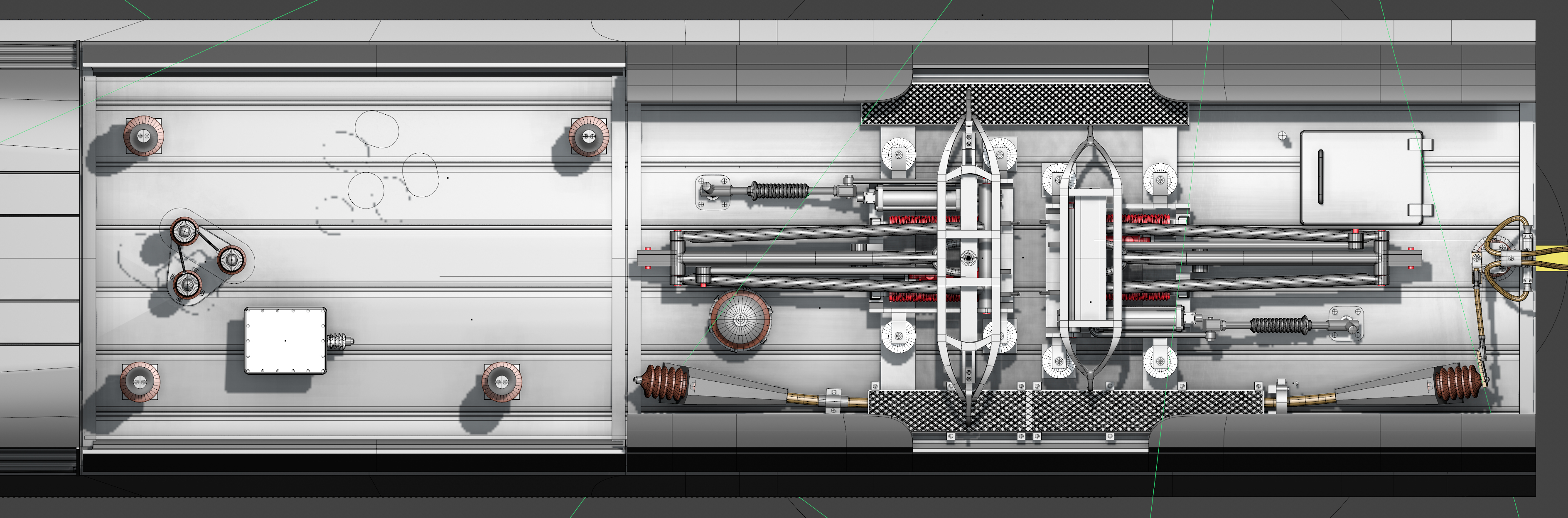 Ce qui échappe obstinément à mes enquêtes, c'est ce qui se trouve sous le couvercle (encerclé en rouge) hormis 4 isolateurs de support. J'ai trouvé des photos vagues où l'on ne voit rien et une photo d'un TGV Duplex qui a eu un accident, mais ceux-ci sont très différents de l'Atlantique. J'accepte avec gratitude toute nouvelle source d'infos !