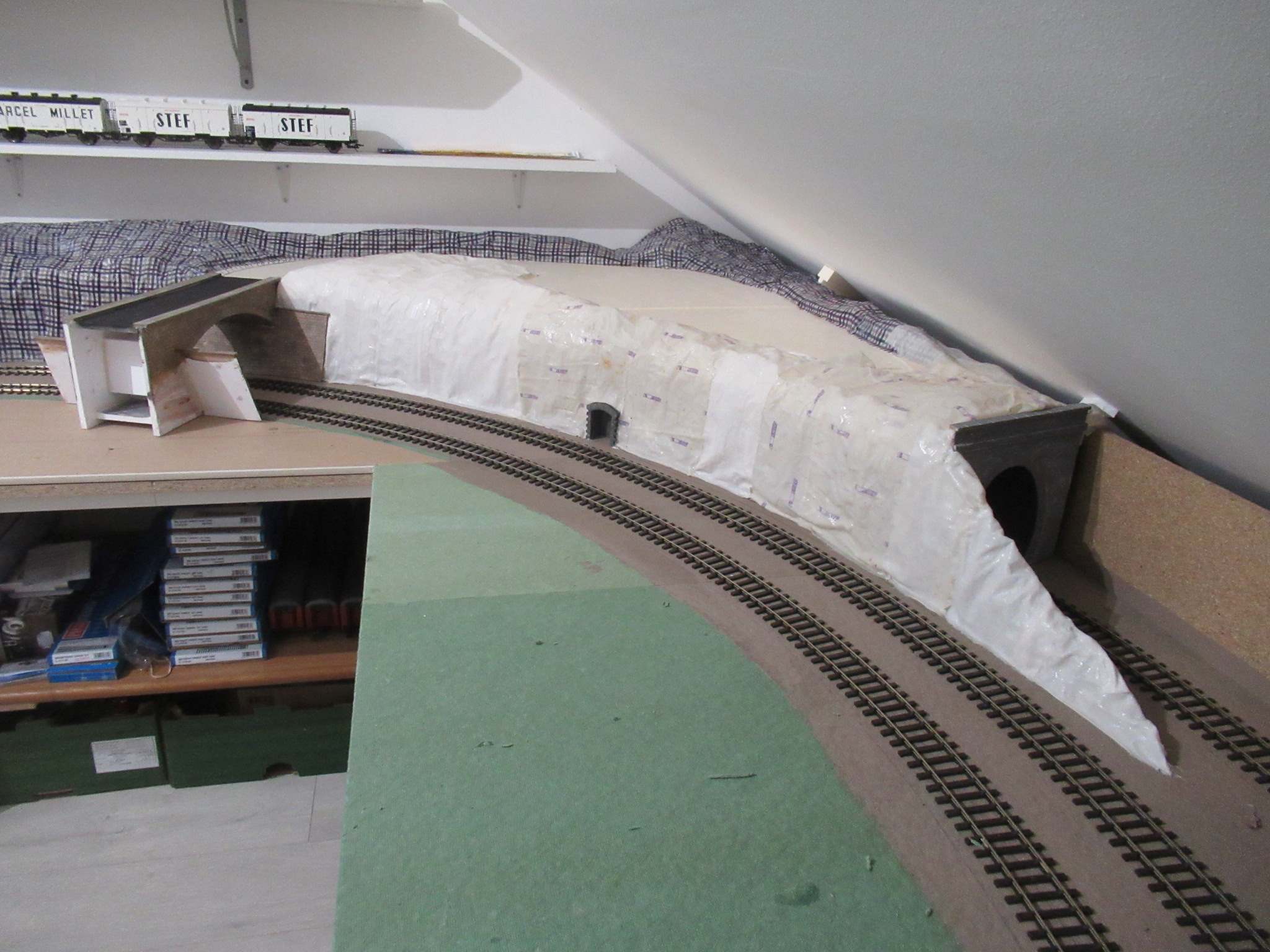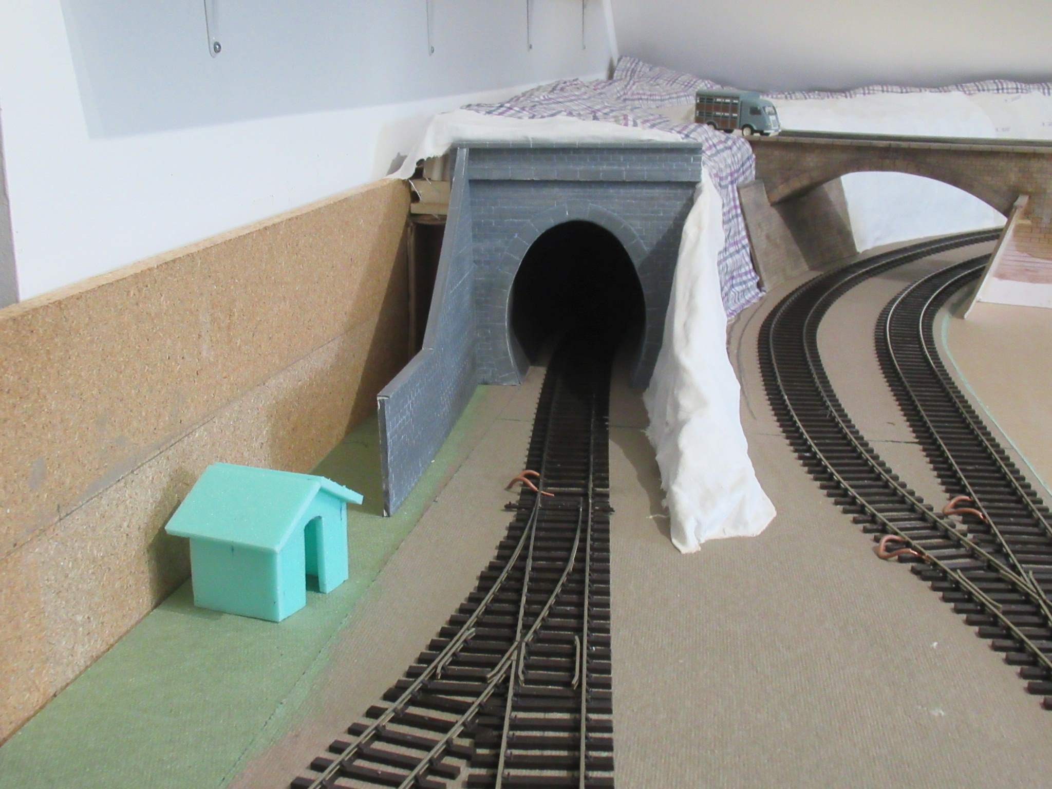Très belle réalisation mais je ne comprends pas l'intérêt du monticule (plâtré) entre le portail du tunnel et les 2 voies qui partent sous la passerelle.