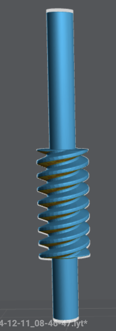 ce n'est ps du tout évident de dessiner une vis sans fin... (pas, angle...) et surtout, son état de suface doit être parfait! sinon vous allez "aracher" de la matière sur la roue qui lui est associé...