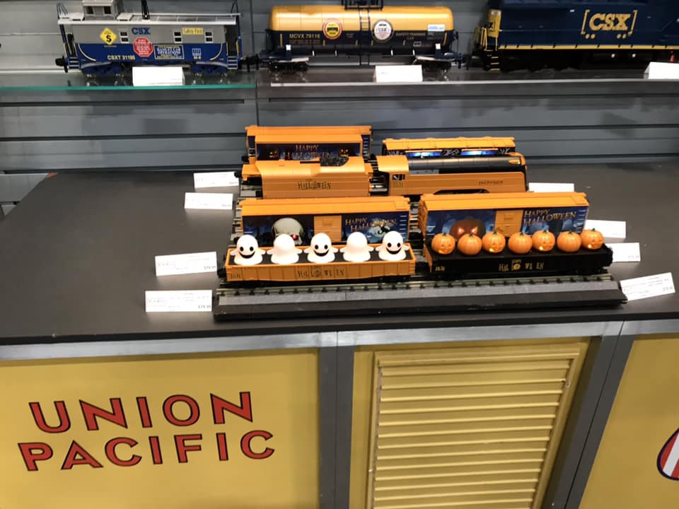 Bien sûr, pour les intéresser, cela ne ressemble en rien aux trains que l’on peut trouver dans les expos en France, c’est du Halloween, du Christmas, du Polar Express ou du coffret Ready to Run comme les machines que nous proposons pour ceux qui connaissent, dans la boutique Ebay régulièrement et pour moi, ce ne sont mêmes pas des trains mais tout simplement des jouets. (photos ci-dessous)