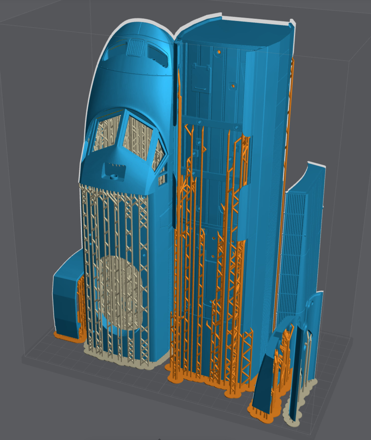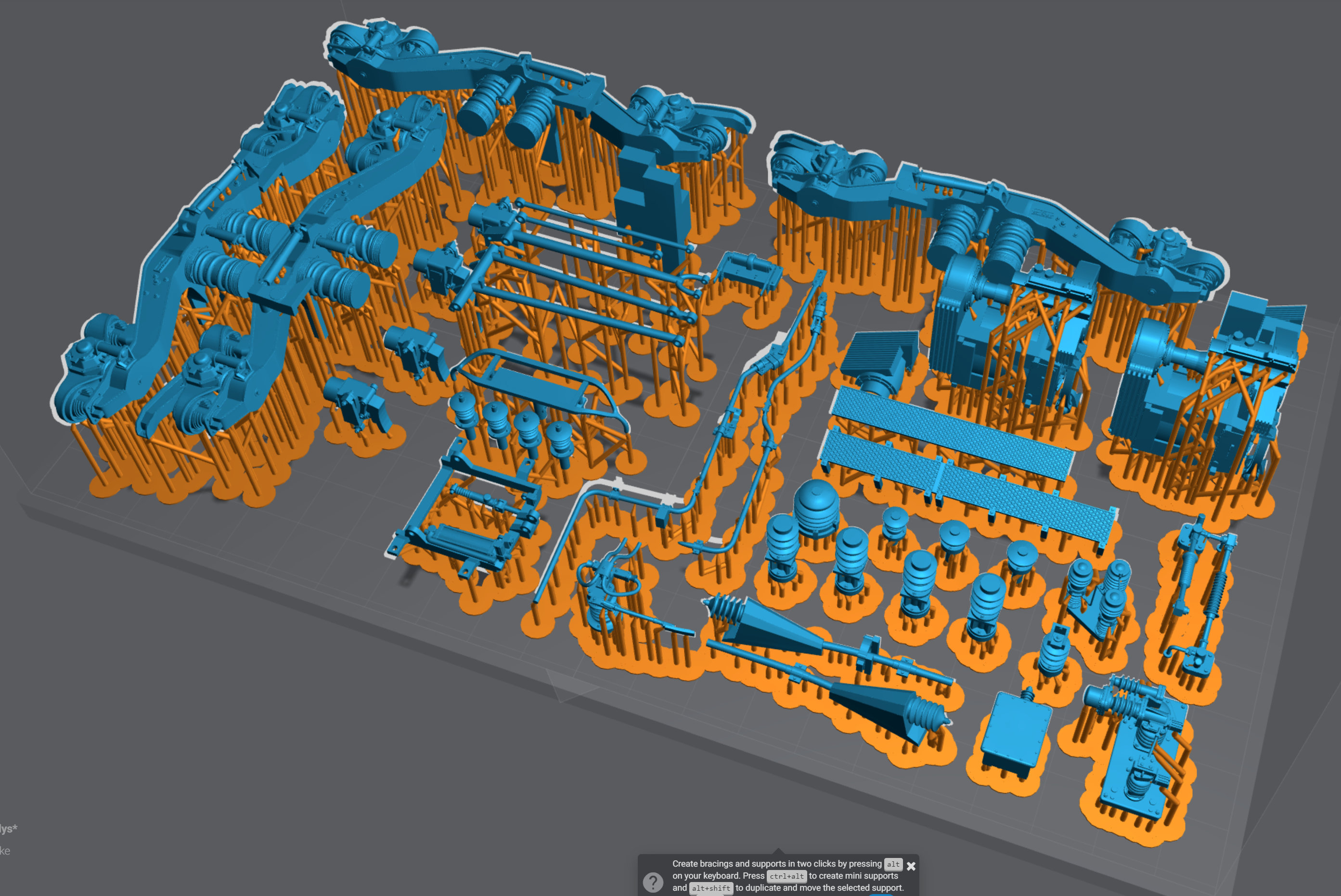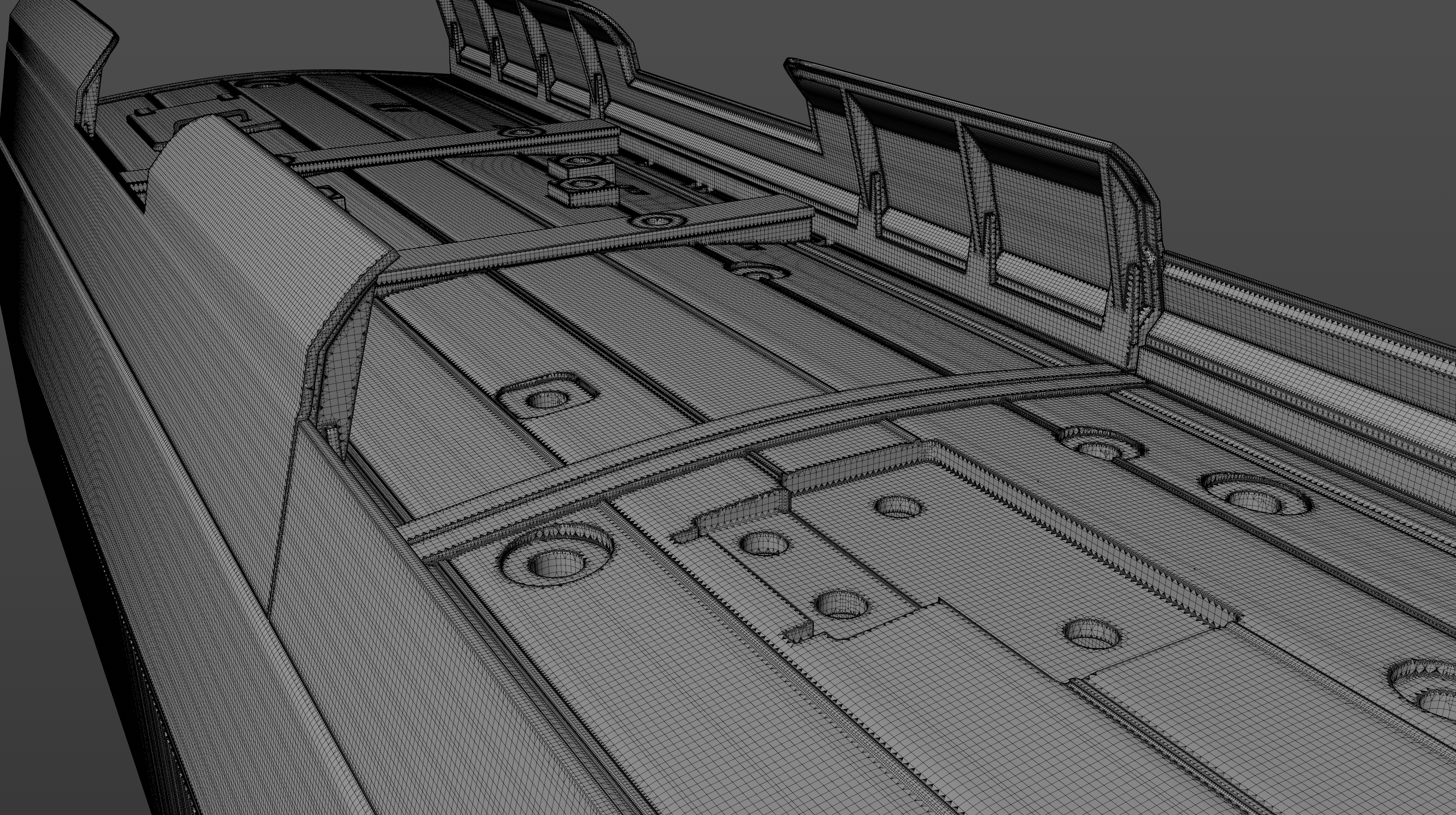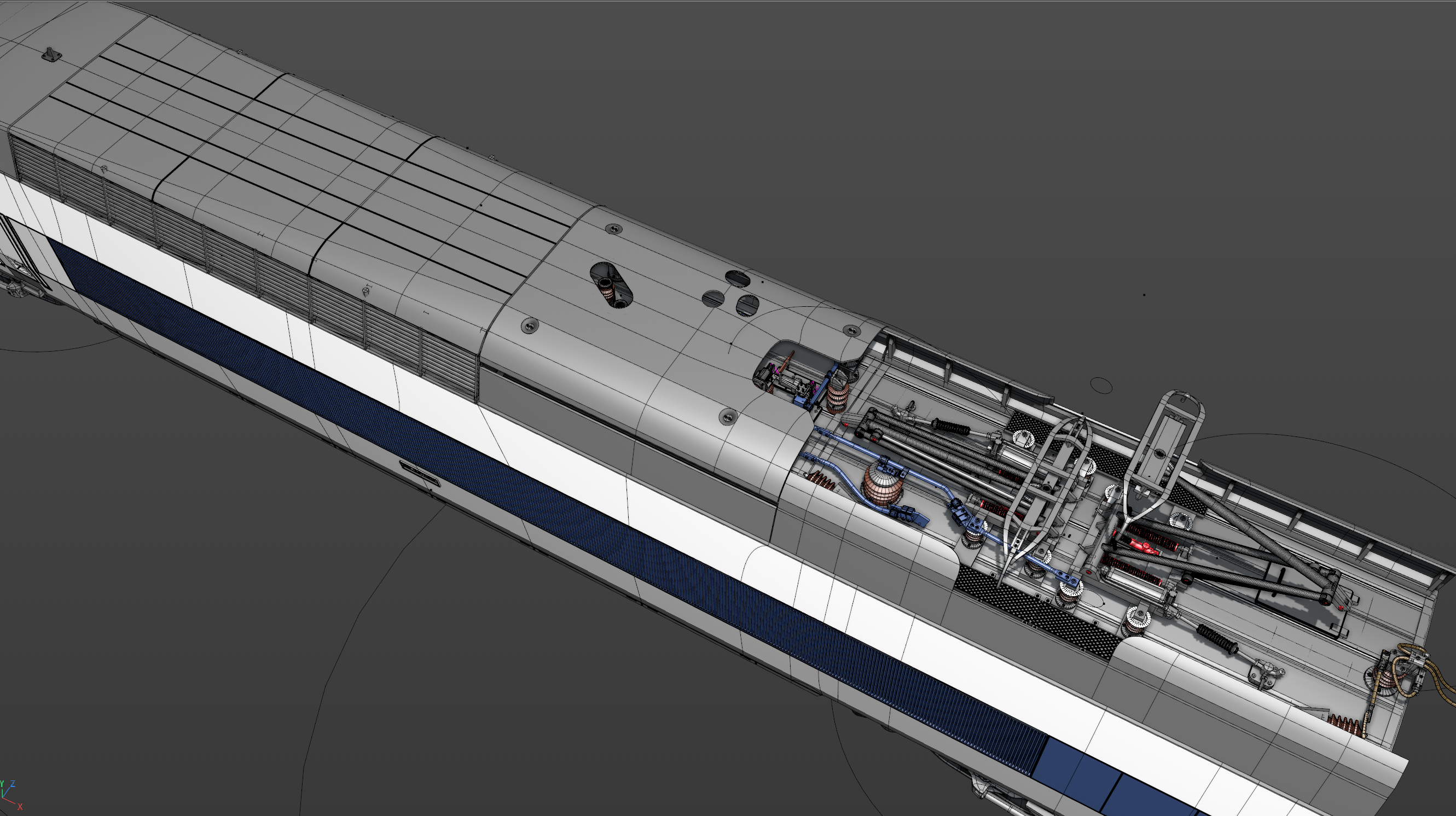 Ça progresse plus lentement que prévu en toiture avec les interconnexions en bleu et de nombreux préparatifs pour un test d'impression. Je dois entre autre préparer le caisson pour les divers composants à appliquer séparément. J'ai envoyé le panto 25kV pour un test en fonderie laiton, voyons si ça produira un résultat positif à approfondir